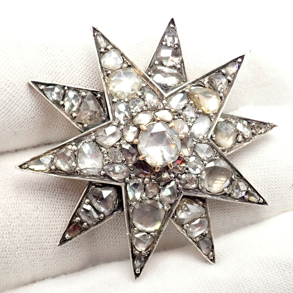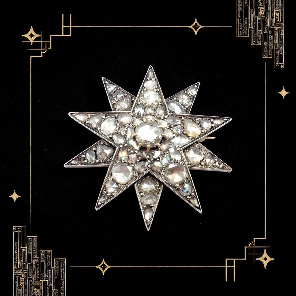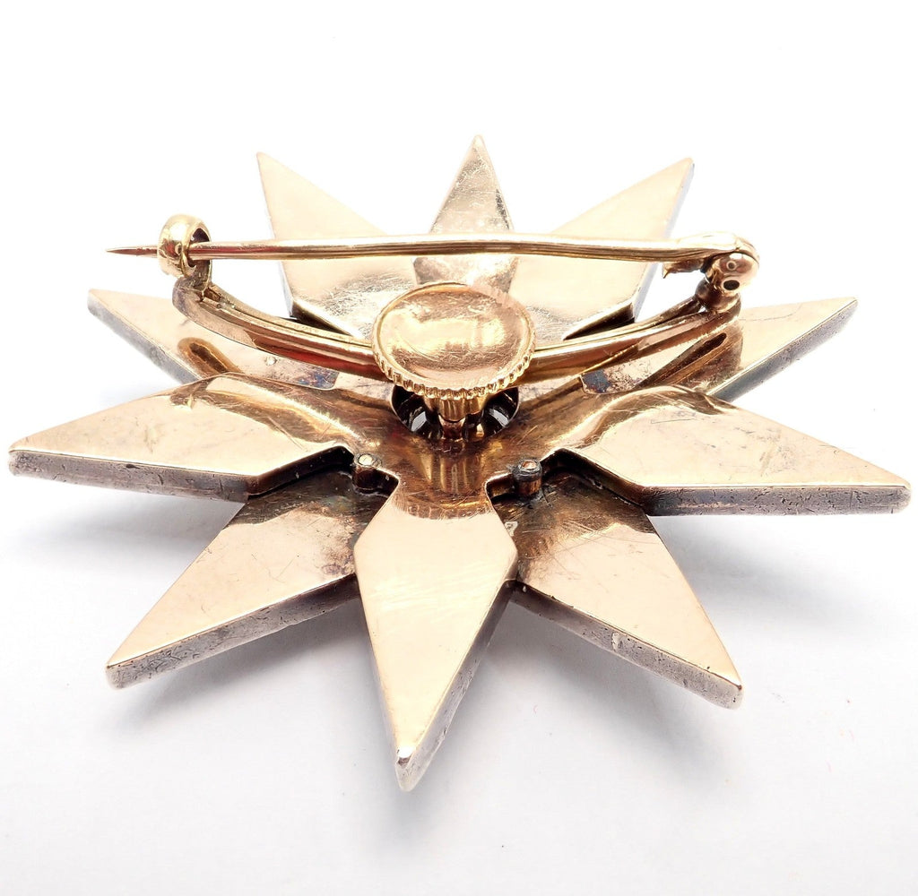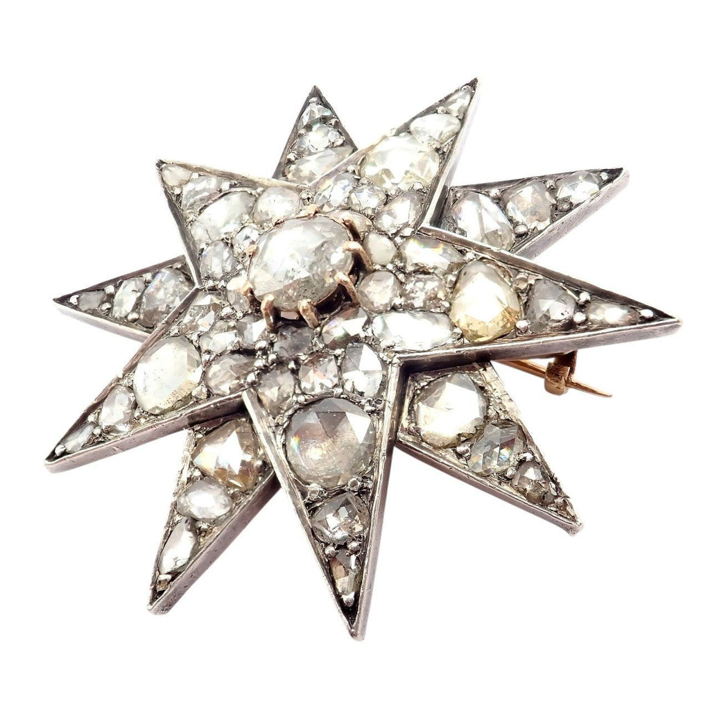 An exquisite Antique Georgian Star Brooch crafted circa 1800s in 18k gold and silver.