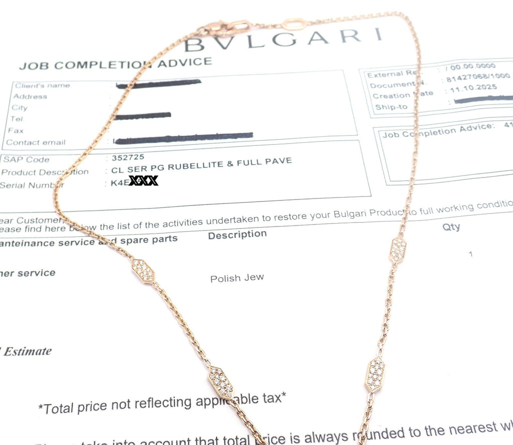 This necklace come with service paper from the Bulgari store and a Bulgari box.
