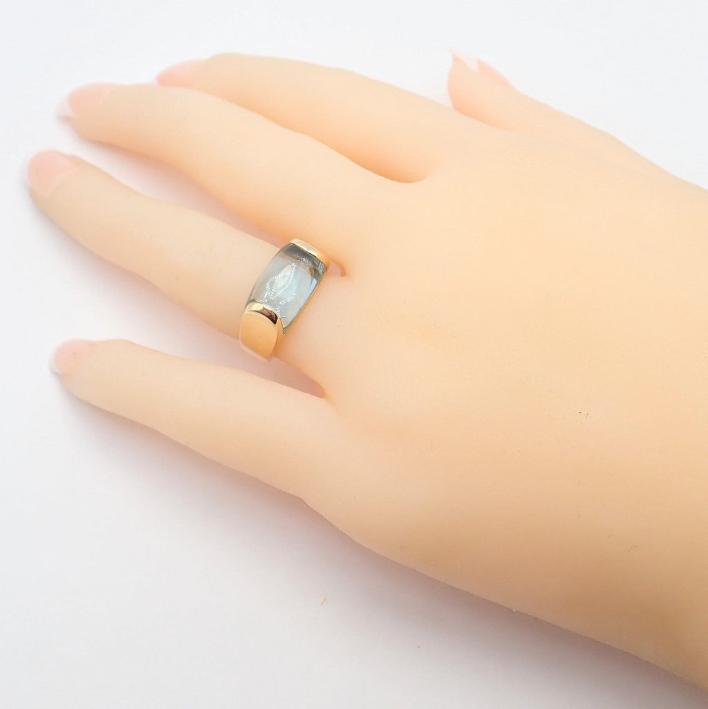 This authentic Bulgari Bvlgari Tronchetto ring features a bold design in 18k yellow gold, showcasing a striking blue topaz.