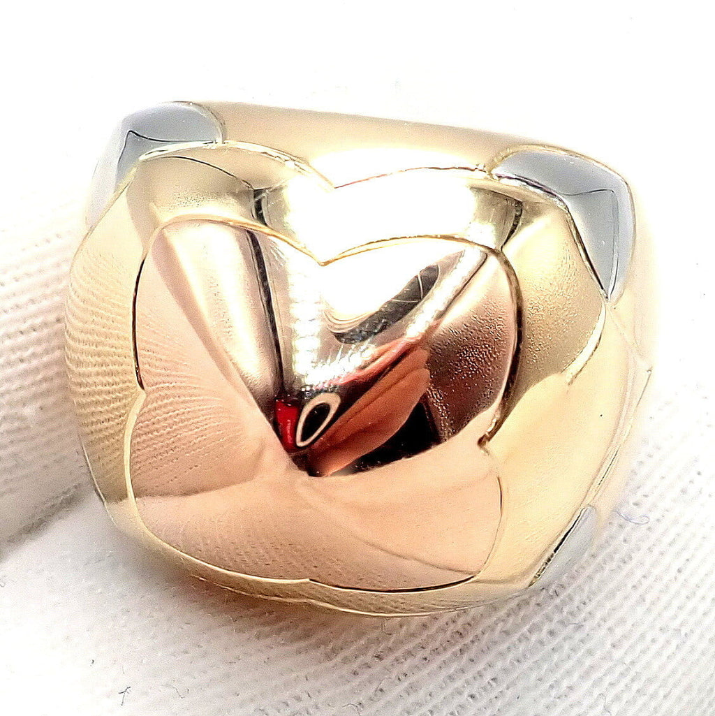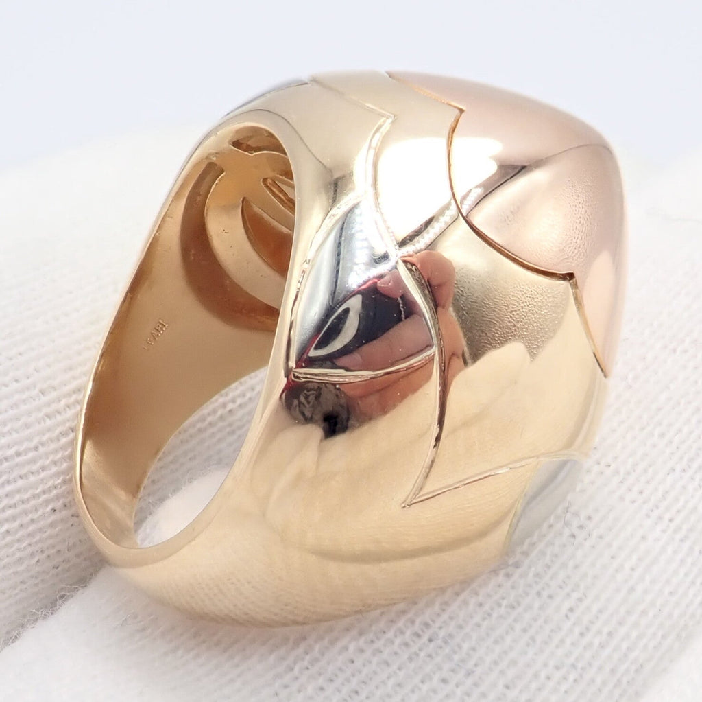 This authentic, rare Bvlgari Pyramid Ring showcases exquisite craftsmanship in 18k yellow, white, and rose gold.
