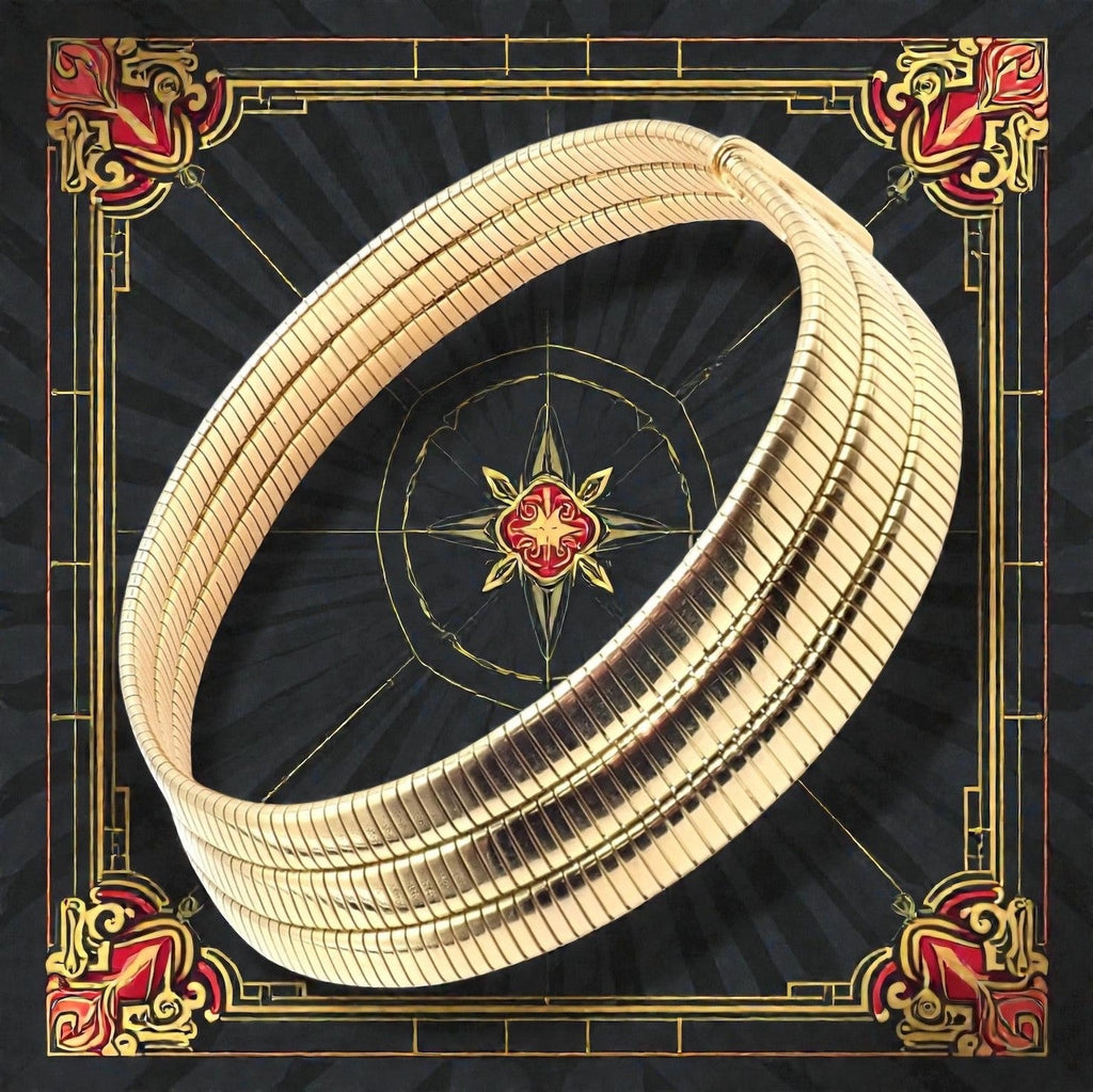 Its iconic flexible coil design wraps smoothly around the neck, showcasing bold Italian glamour and impeccable engineering.