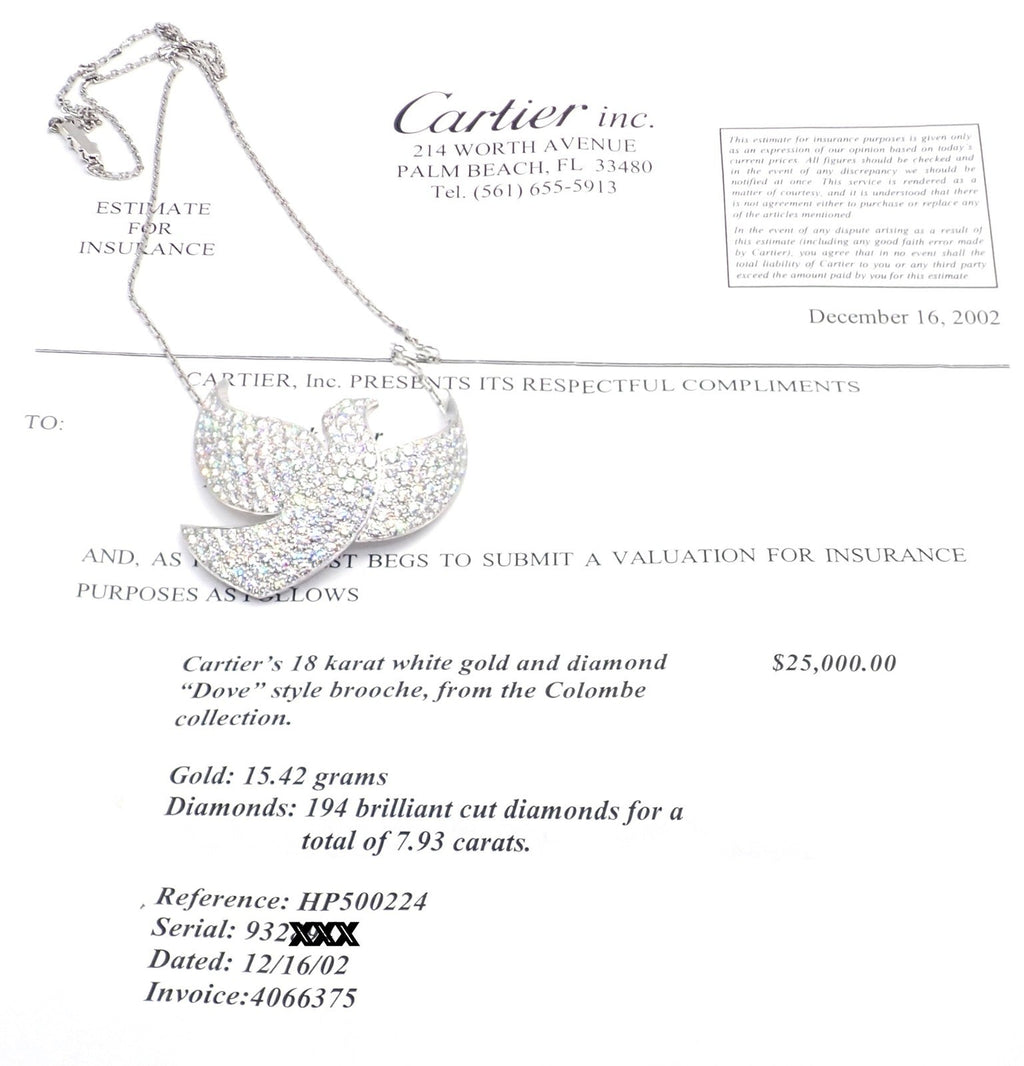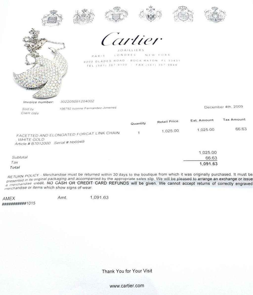 This necklace comes with sales receipt for brooch and the paper from Cartier that the brooch has been converted to a necklace.