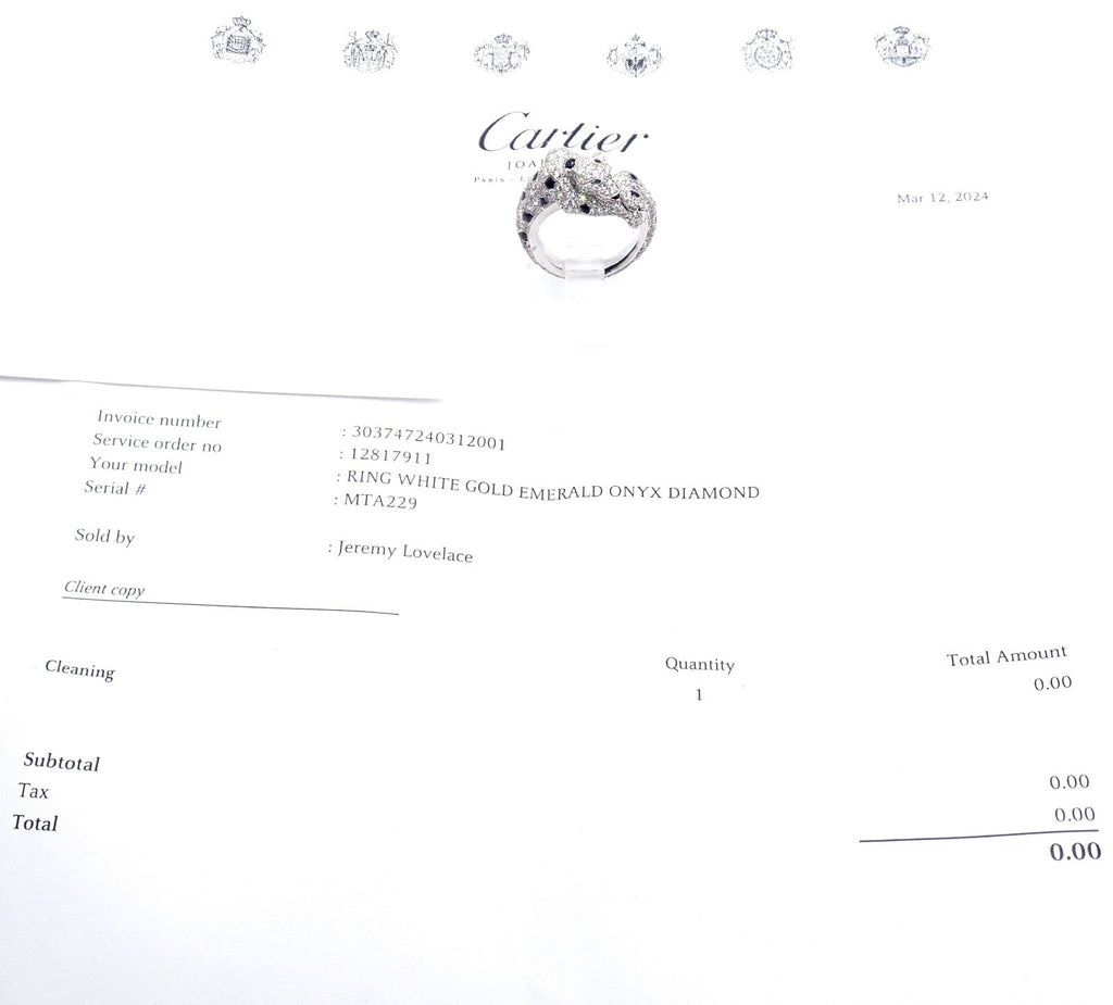 This luxurious ring comes with official Cartier paperwork, certifying its authenticity and high quality.