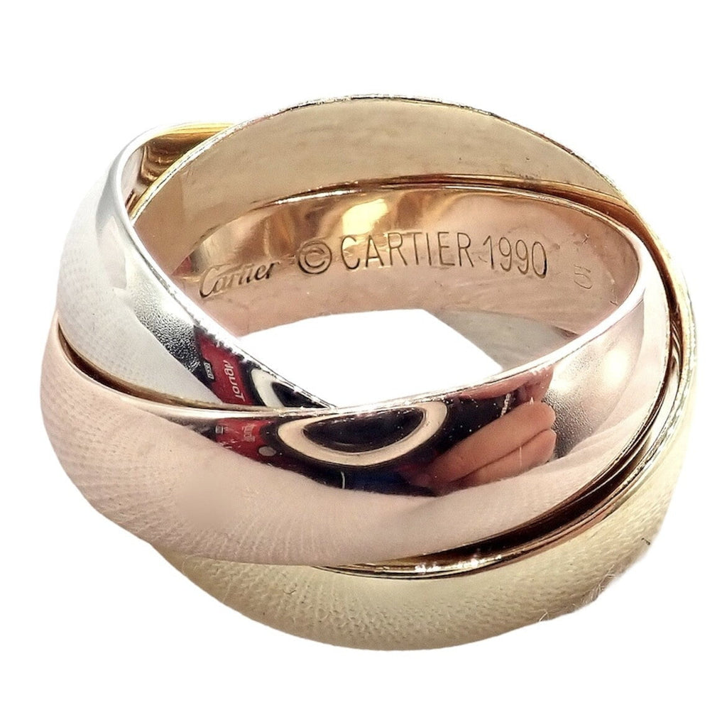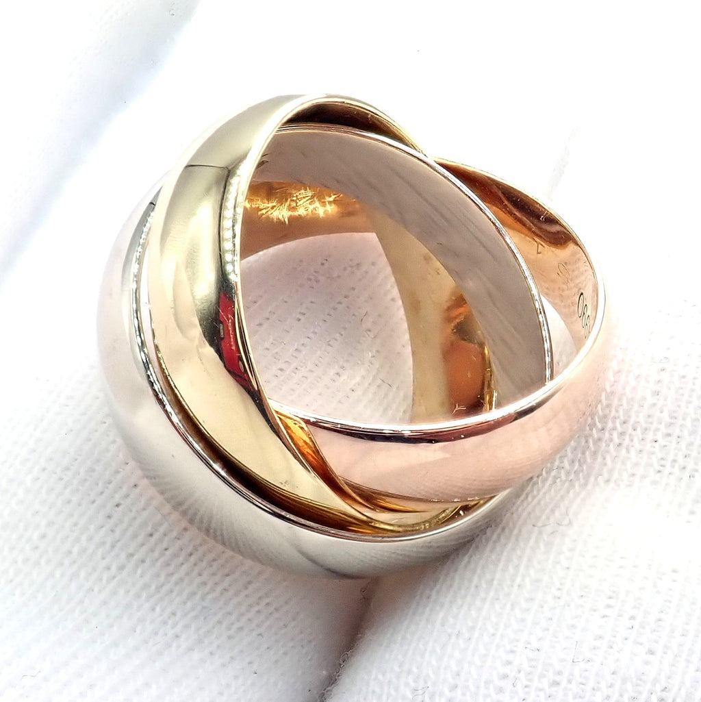 The Cartier Trinity 18k TriColor Gold Wide Band Ring is an elegant and timeless piece of jewelry.