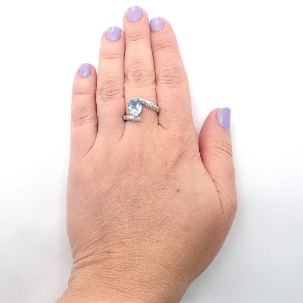 | Stones: | Center 1 pear cut Aquarmarine, 2.25ct Approx 36x round brilliant cut diamonds E color, VVS1 clarity total weight approximately 0.32ctw |
