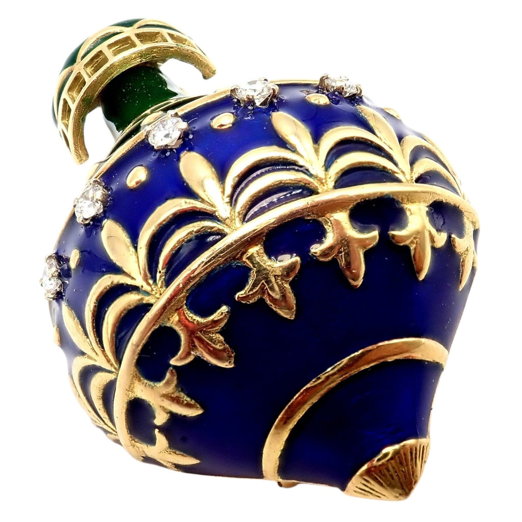 This exquisite Christian Dior Jules Verne brooch, crafted from 18k yellow gold, features intricate enamel detailing and dazzling diamonds.