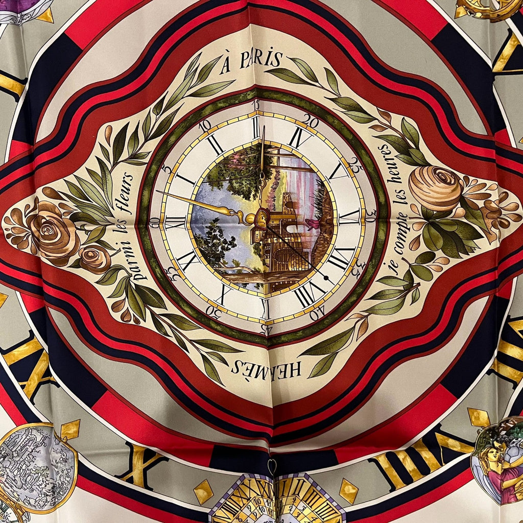 This poetic design celebrates the passage of time among blossoms with delicate floral motifs and elegant typography, beautifully rendered in luxurious Hermès silk twill.