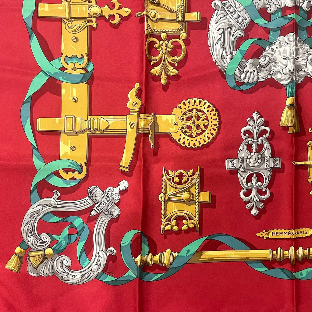 This Authentic vintage Hermès “Ferronnerie” silk scarf (Carré 90) is a classic luxury accessory designed by Caty Latham and first introduced in 1970, reissued several times since then.