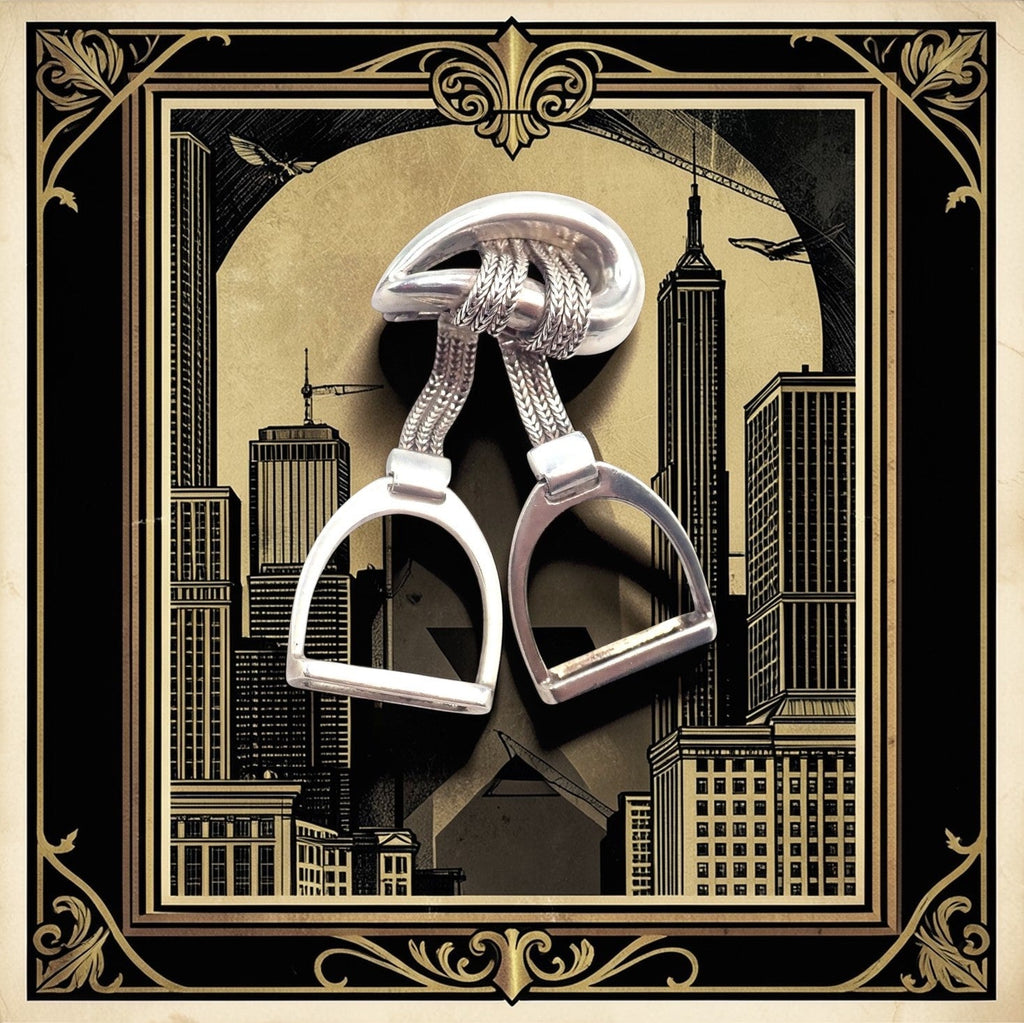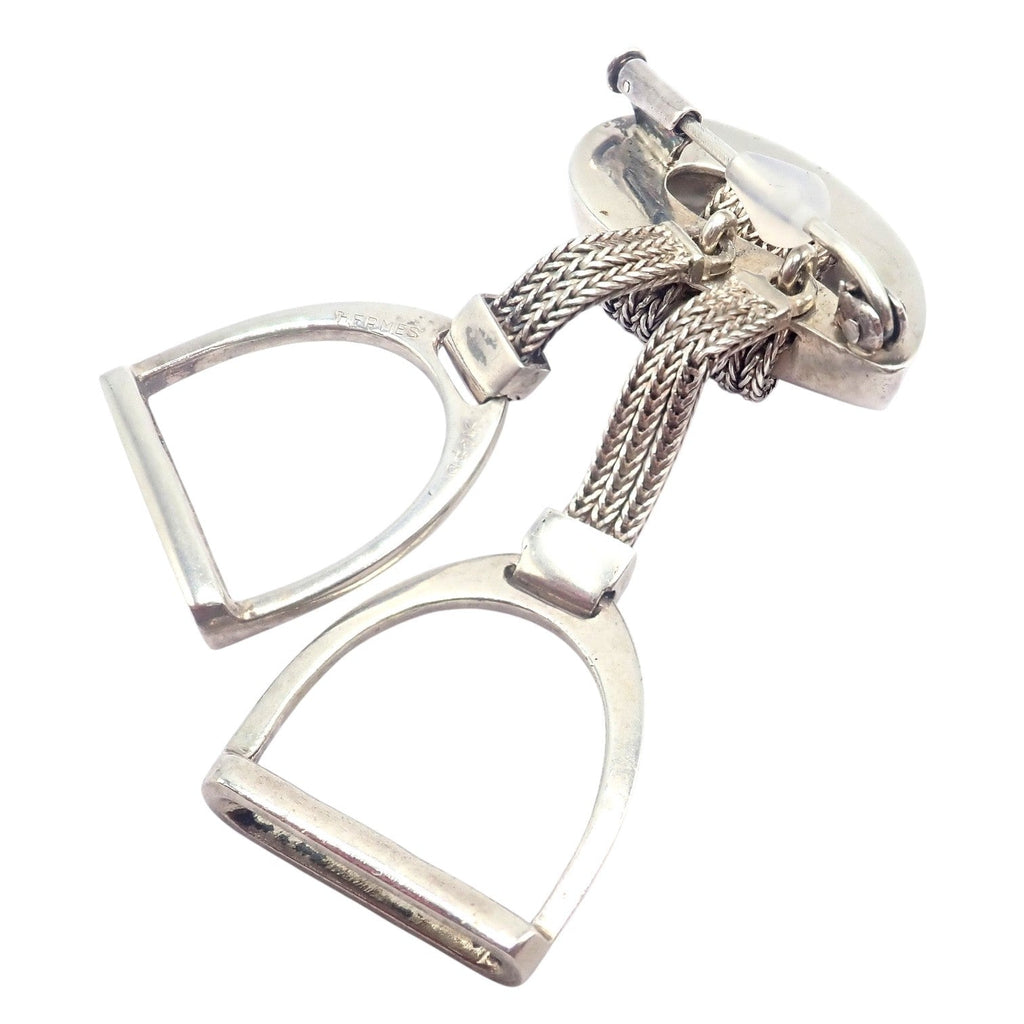 Elegant Hermès Sterling Silver Double Stirrup Brooch Pin inspired by the house’s equestrian heritage.
