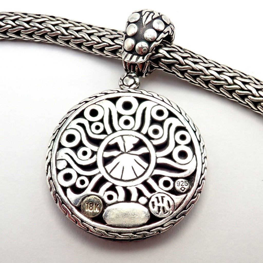 Authentic John Hardy necklace featuring the iconic Dot pendant, crafted in sterling silver and accented with radiant 18k yellow gold dots.