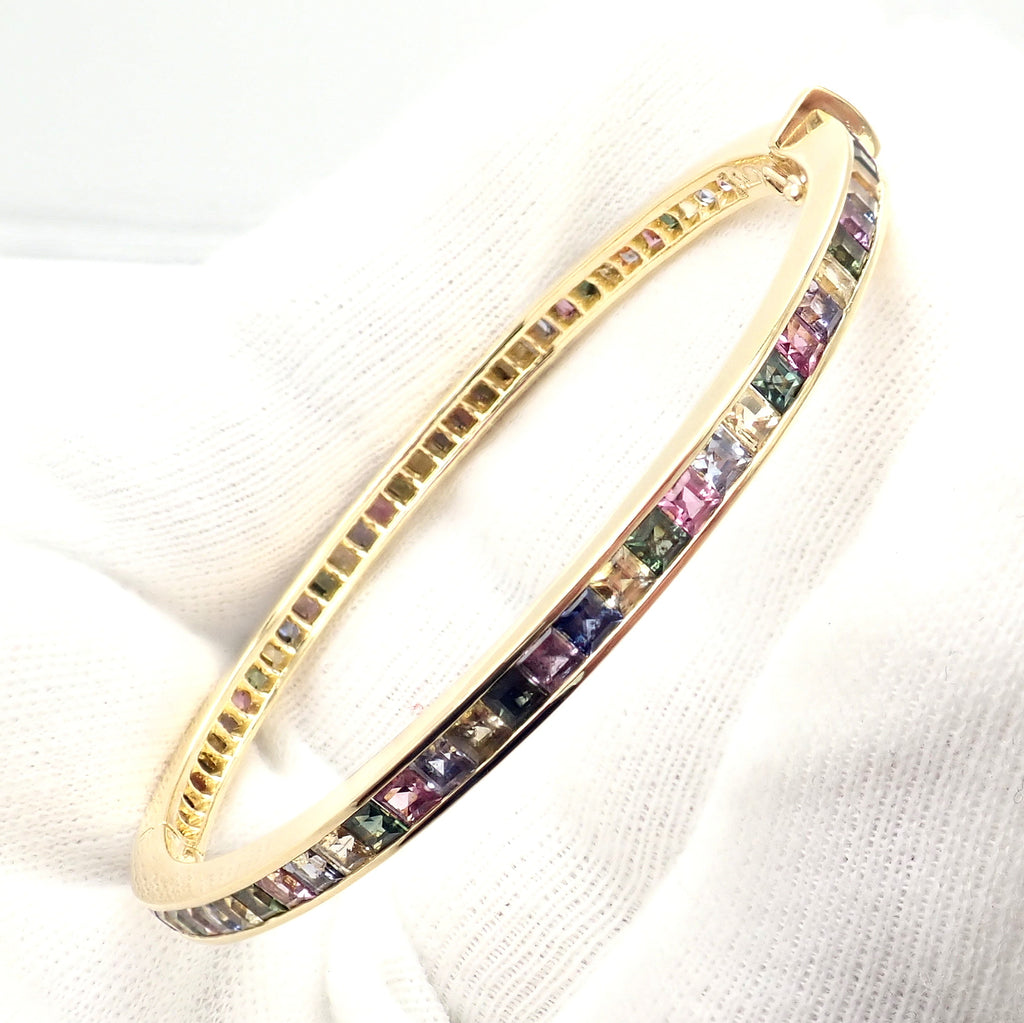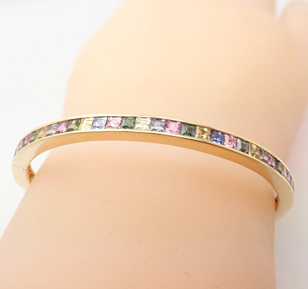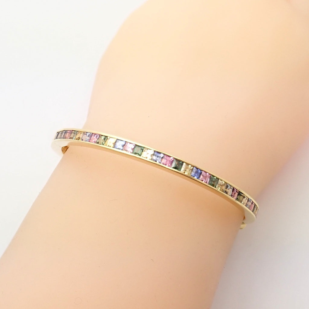| Stones: | This bracelet includes so many different precious color stones, it makes for a pastel wonderland. Spinels, Iolites, Sapphires, and More |