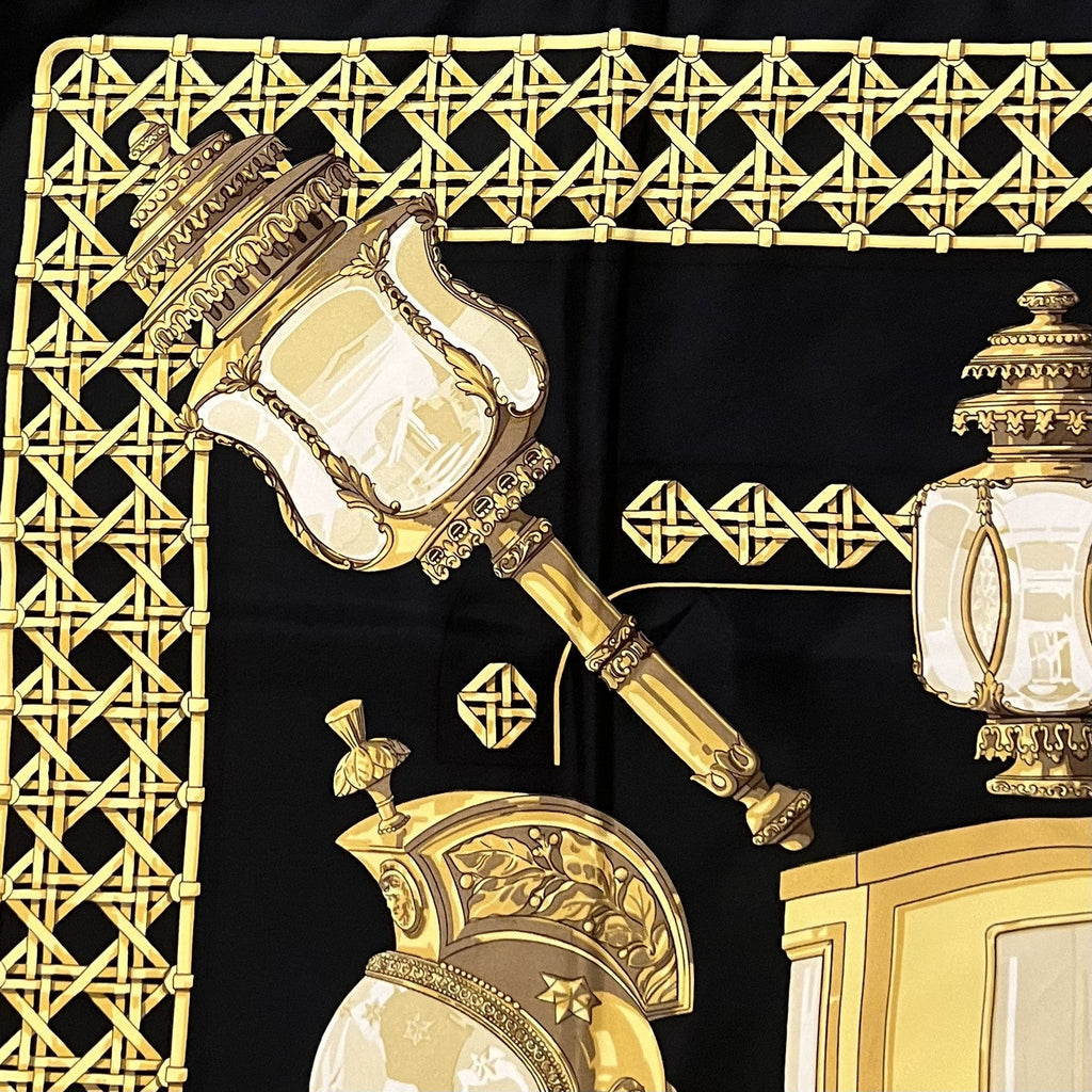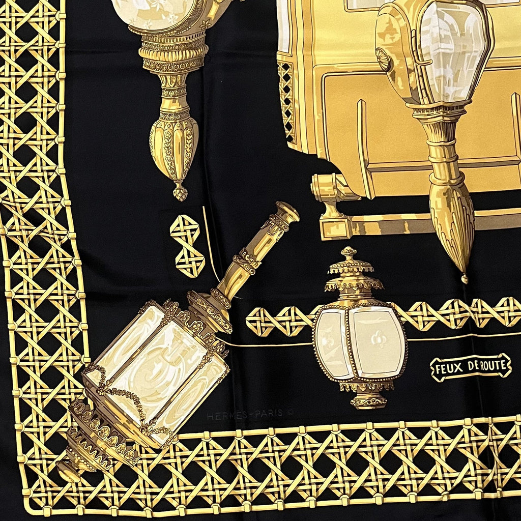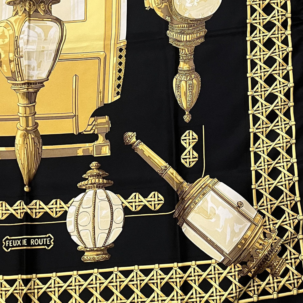 An authentic, rare Hermès “Feux de Route” silk scarf in a sophisticated black colorway, prized for its bold graphic design and architectural elegance. Crafted in luxurious Hermès silk twill, it offers exceptional drape and timeless versatility. A highly collectible piece, ideal for fine fashion and jewelry clientele who value heritage, artistry, and enduring style.