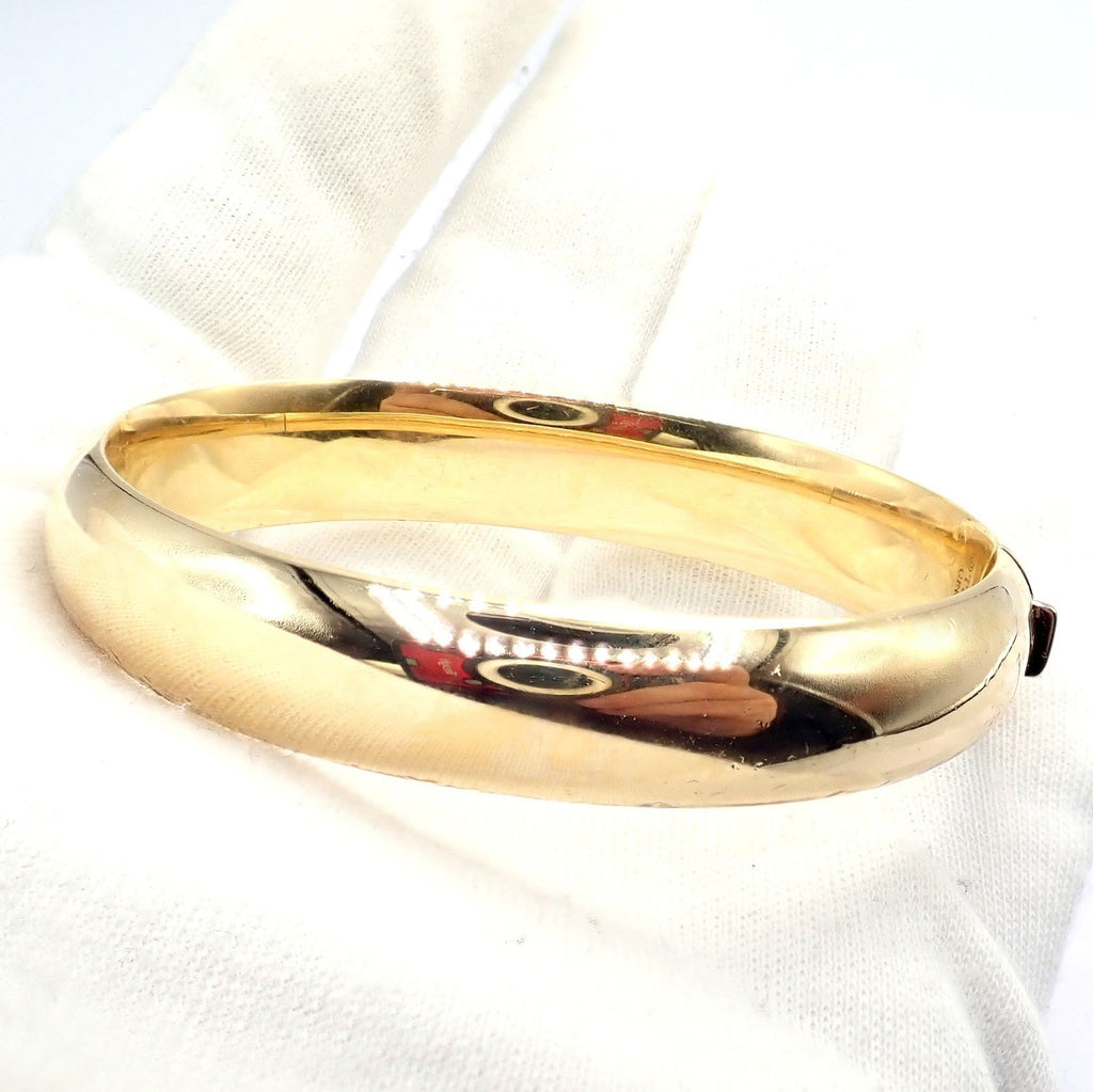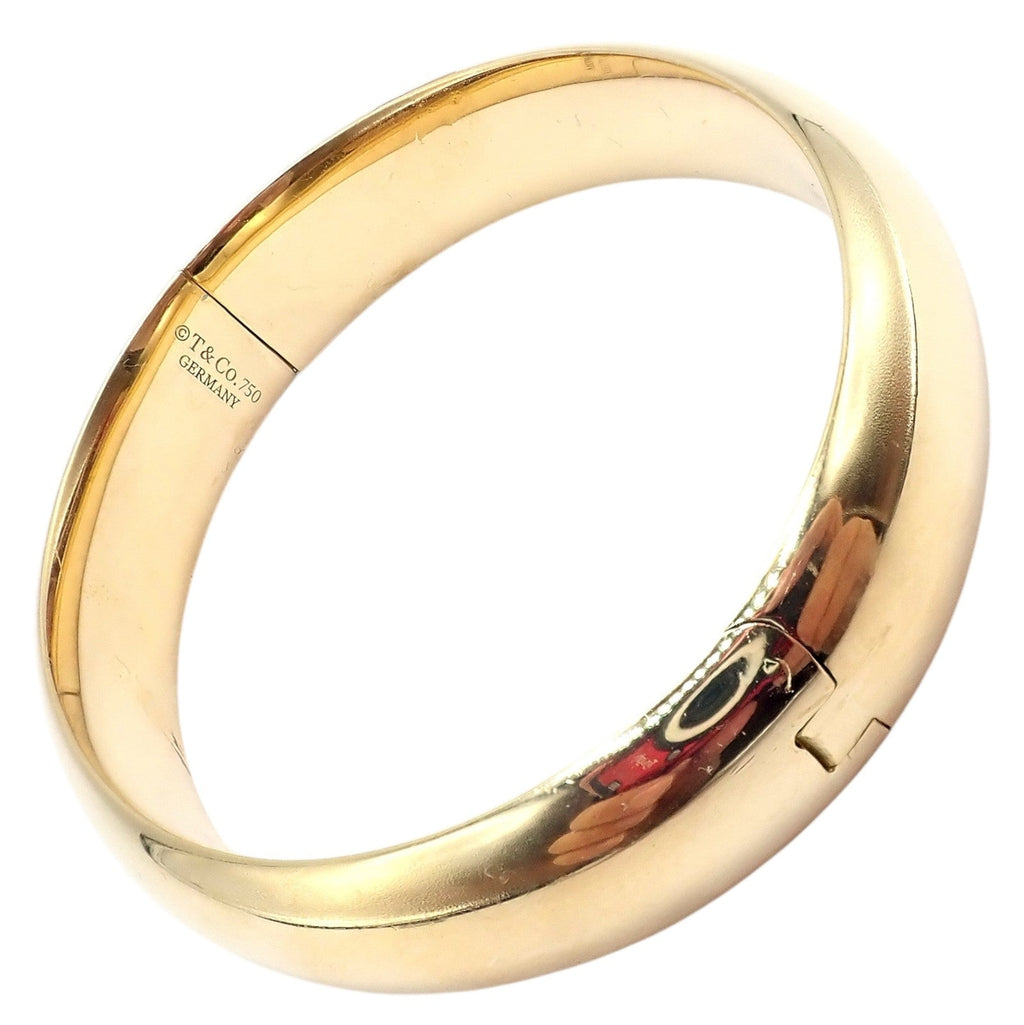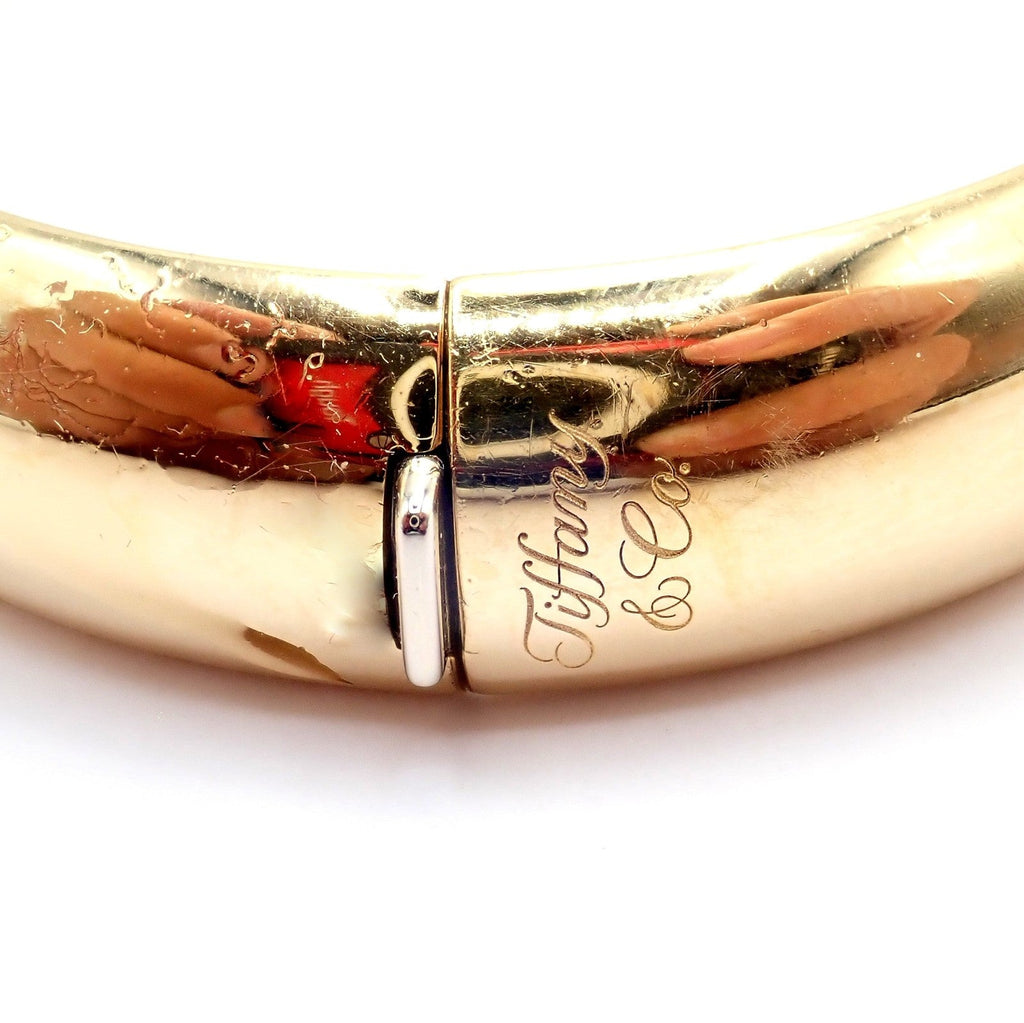 Timeless Tiffany & Co. 18k yellow gold bangle featuring a sleek, highly polished dome design.
