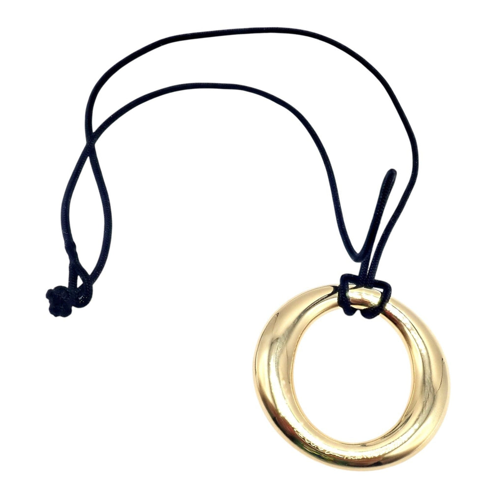 Suspended from a Tiffany & Co. black silk cord, it exudes modern sophistication with a timeless appeal.