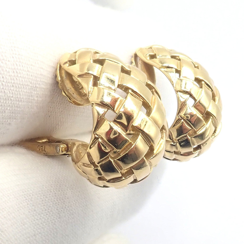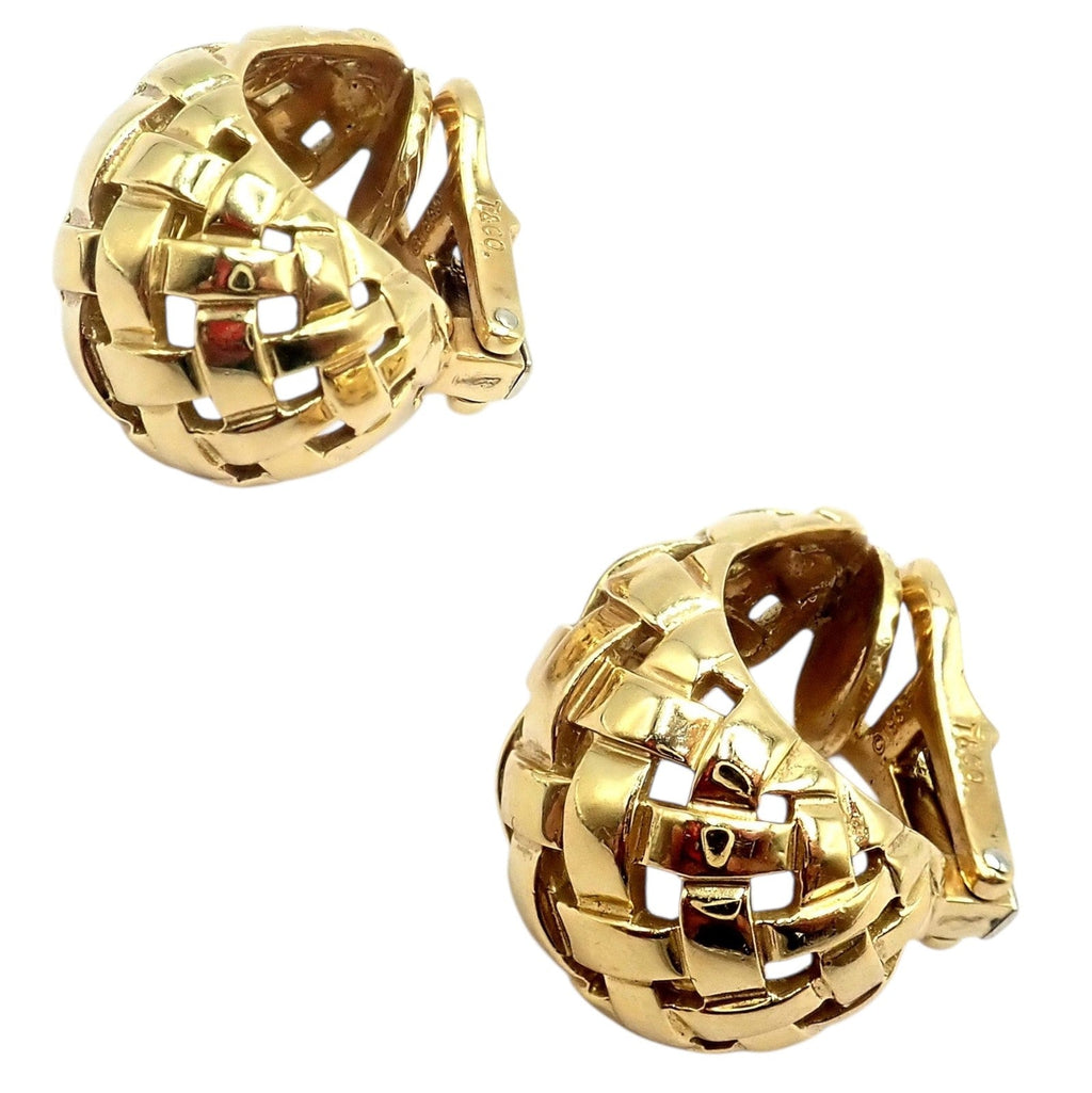 Vintage Tiffany & Co. Vannerie earrings from 1989, crafted in rich 18k yellow gold.