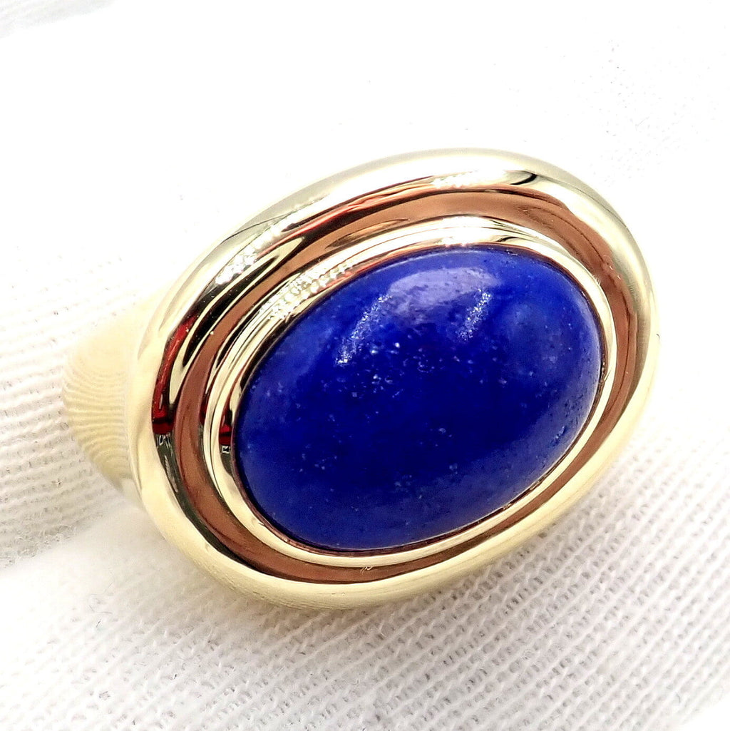 This bold Tiffany & Co. Paloma Picasso ring features a striking oval lapis lazuli cabochon set in rich 18k yellow gold.