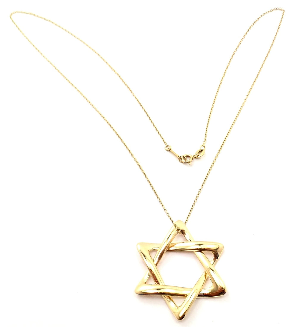 The Tiffany & Co Peretti 18k Gold Large Star of David Pendant Necklace features a boldly sized, elegantly sculpted Star of David in polished 18k gold.