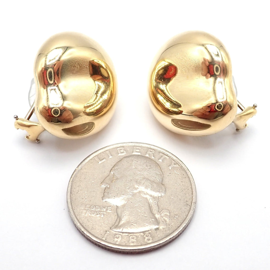 The Tiffany & Co. Peretti Extra Large Thumbprint Earrings, crafted in 18k yellow gold, are a testament to minimalist elegance and contemporary design.