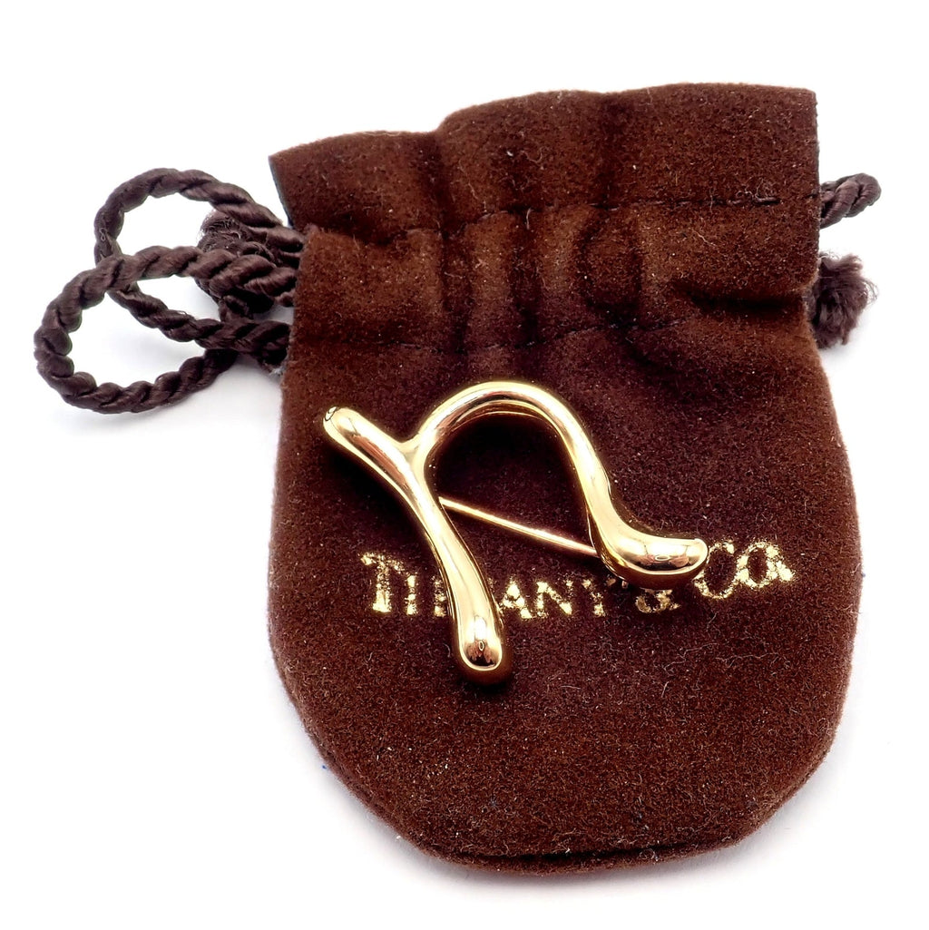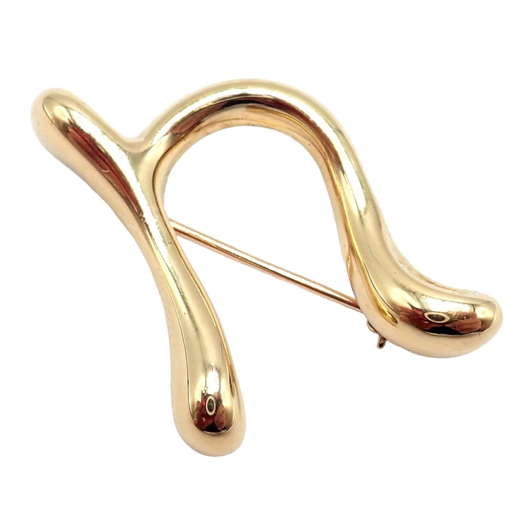 The Tiffany & Co Peretti 18k Yellow Gold Initial N Pin Brooch from 1983 features a sleek, stylized "N" design, embodying Elsa Peretti's minimalist aesthetic.