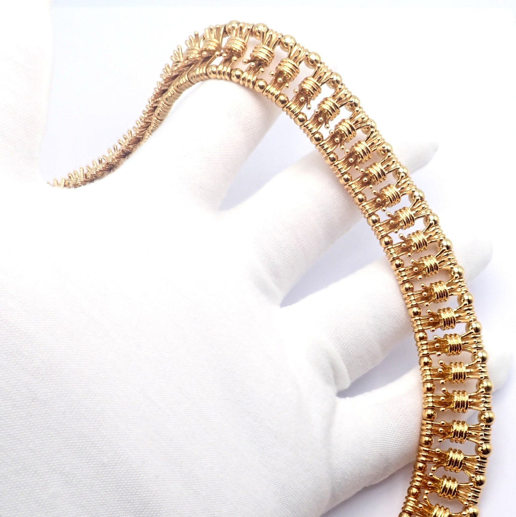 An exceptional example of Jean Schlumberger’s iconic design, this authentic Tiffany & Co. collar necklace is masterfully crafted in rich 18k yellow gold.