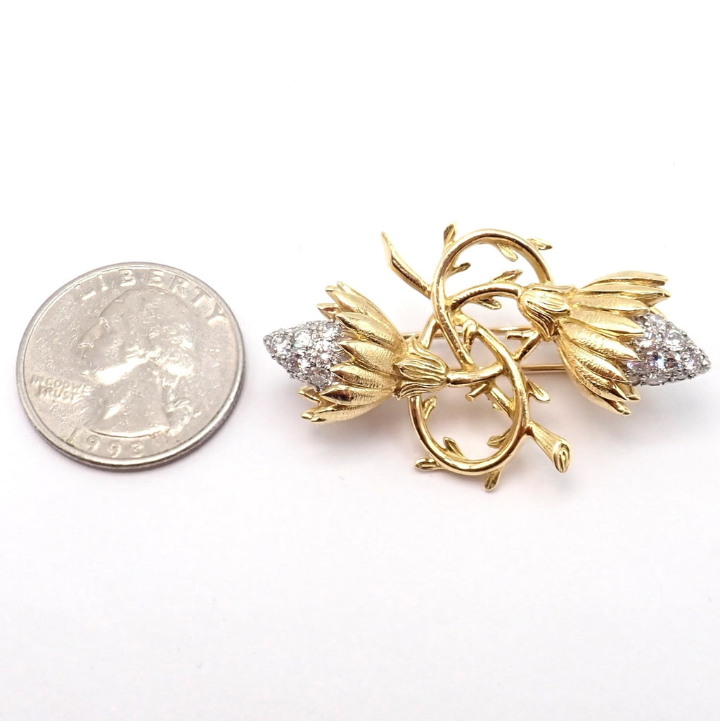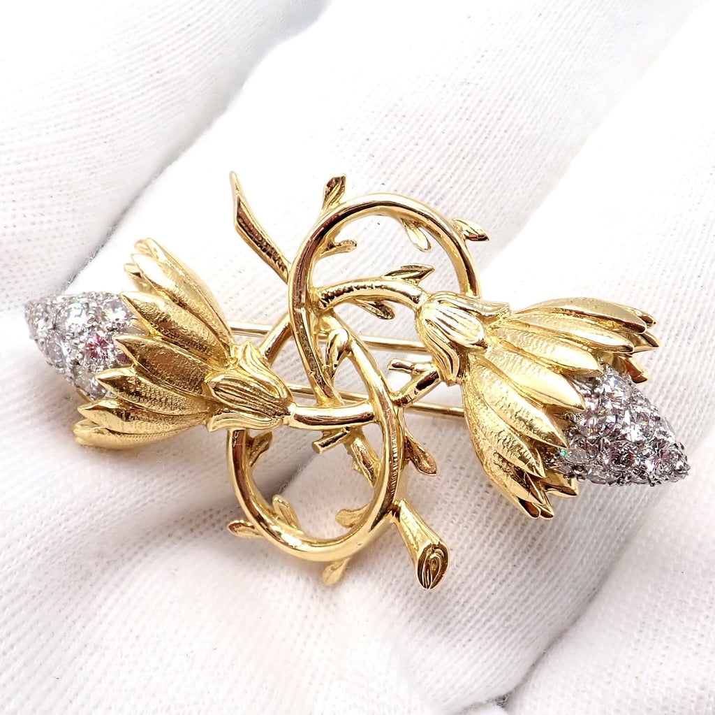 This exquisite Tiffany & Co Schlumberger double thistle pin is meticulously crafted in 18k yellow gold and platinum.