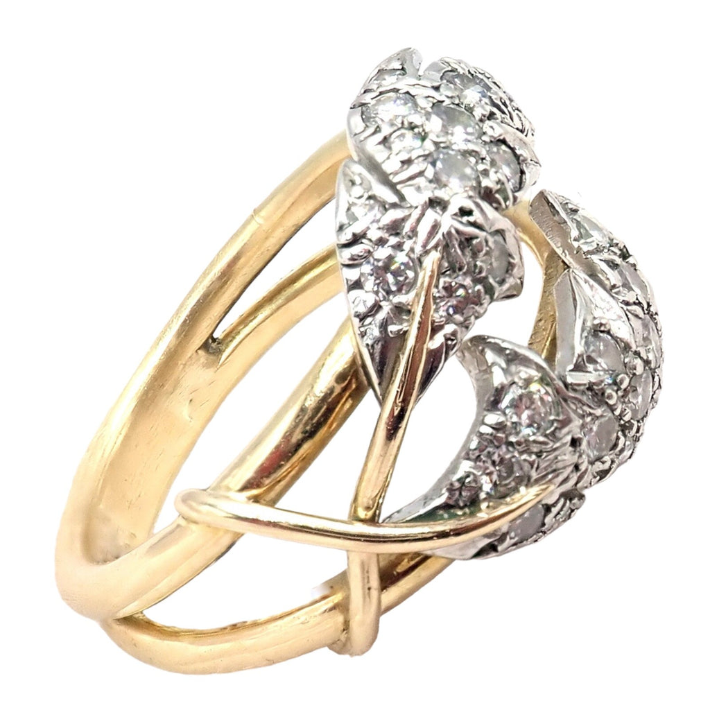The Authentic Tiffany & Co. Schlumberger Diamond Yellow Gold Platinum Two Leaf Ring epitomizes elegance and artistry.