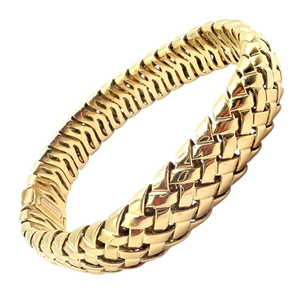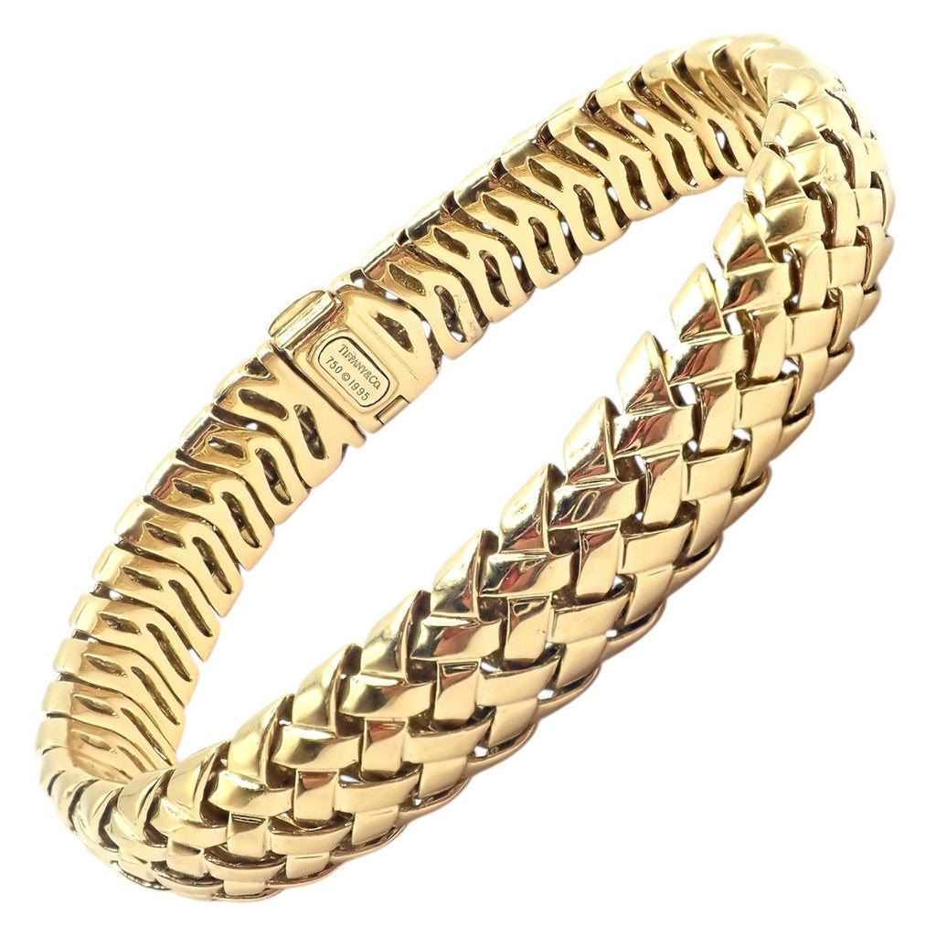 Elegant Tiffany & Co. Vannerie bracelet from 1995, crafted in luminous 18k yellow gold.