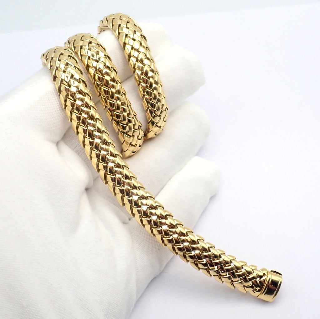 Elegant Tiffany & Co. Vannerie necklace crafted in radiant 18k yellow gold, showcasing a beautifully articulated basket-weave design.