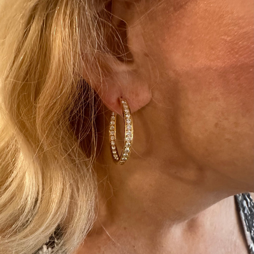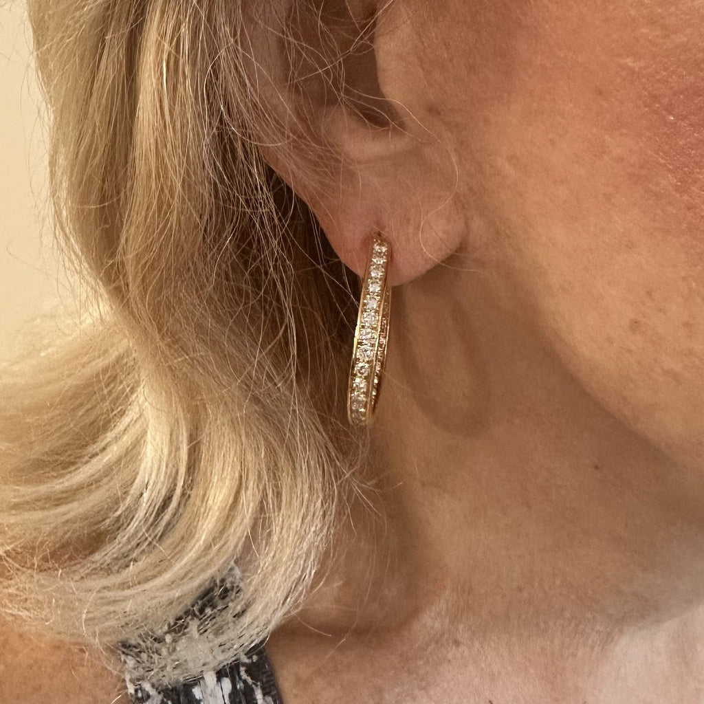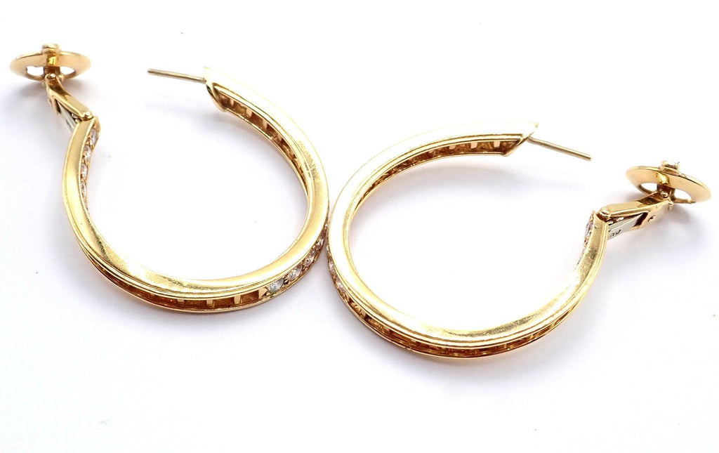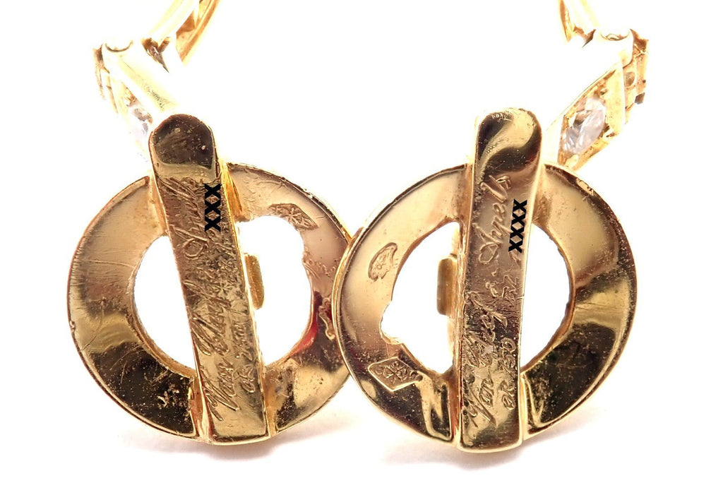 These Van Cleef & Arpels large hoop earrings are exquisitely crafted in 18k yellow gold and adorned with brilliant-cut diamonds for maximum sparkle.