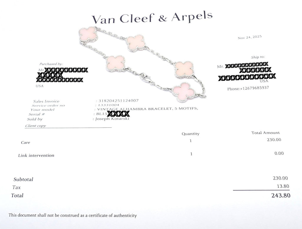 This bracelet comes with Van Cleef & Arpels certificate of authenticity, pouch and a service paper from a VCA store from the USA.