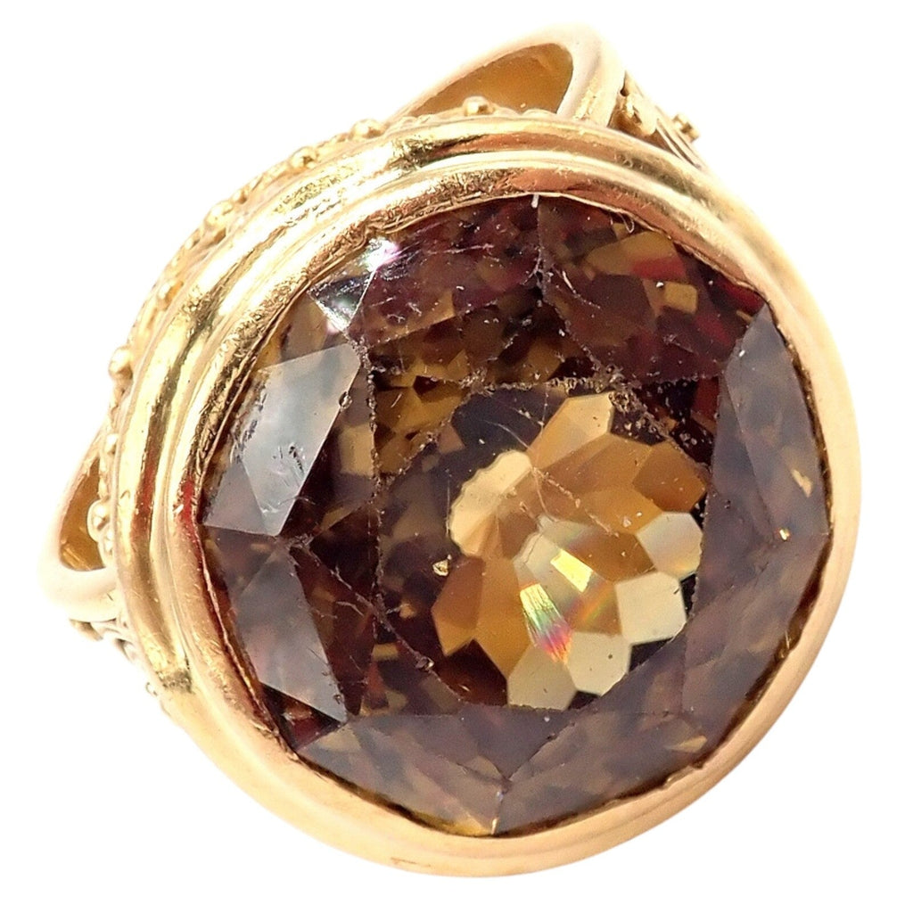 Carolyn Tyler’s captivating Seven Seas ring exudes lavish brilliance, featuring a mesmerizing large glowing golden color yellow zircon centerpiece.