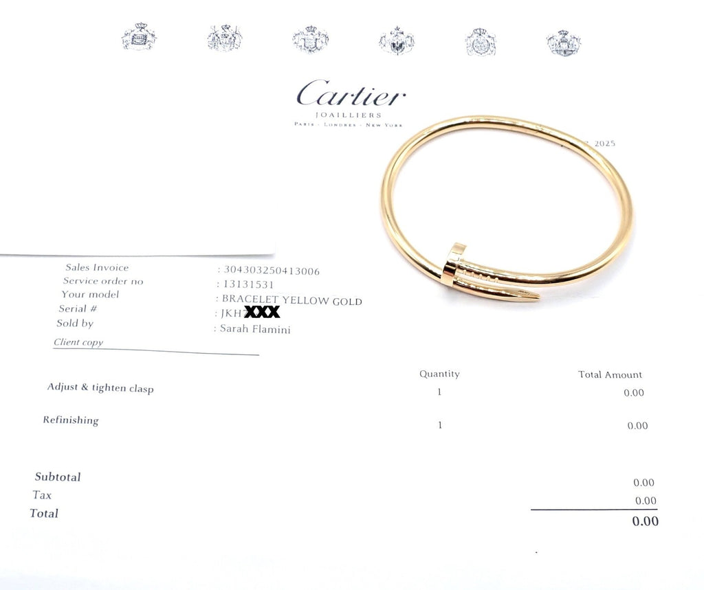 Hallmarks: | Cartier 750 17 JKHXXX(serial number omitted) |
