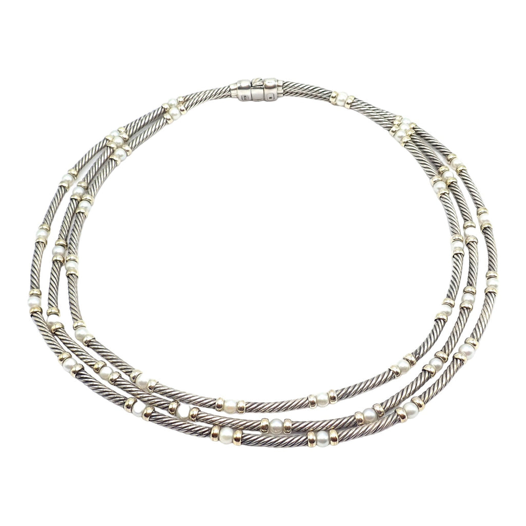 David Yurman's 15" necklace melds DY sterling silver with 14k yellow gold, highlighting the brand's renowned 3-cable motif at 3mm each.