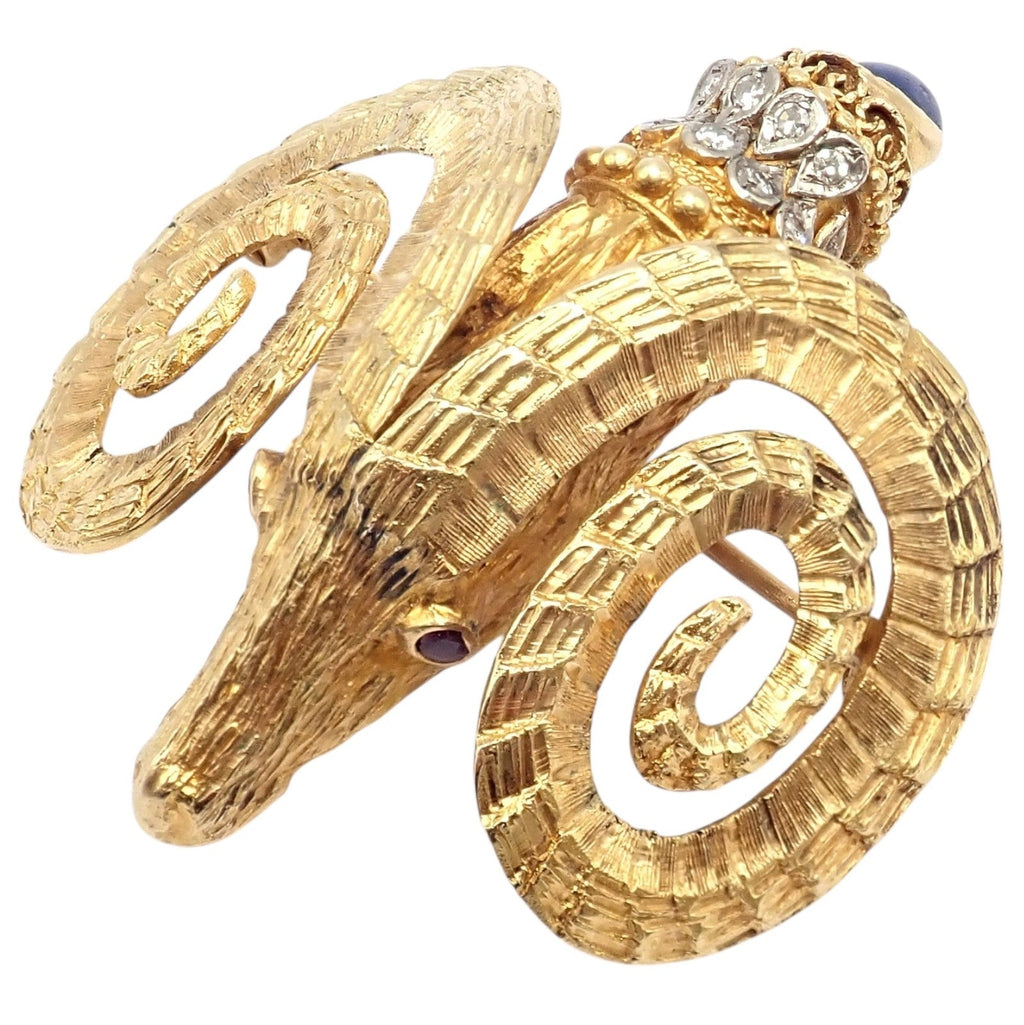 This rare Greek Ilias Lalaounis brooch showcases exquisite artistry in 18k yellow gold, sculpted as a majestic ram symbolizing Ares, the god of war.