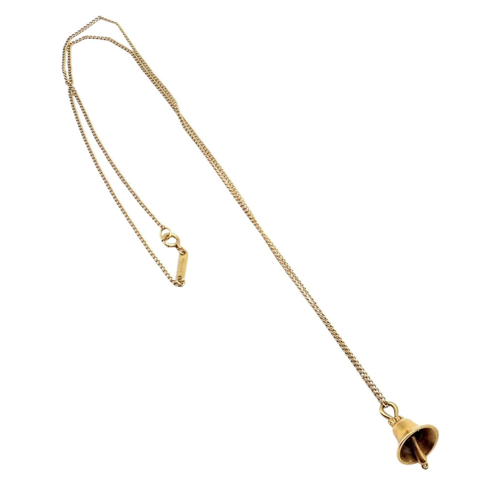 Vintage 1970s Tiffany & Co. for Ralph Lauren necklace crafted in 18k yellow gold, featuring a charming nautical bell pendant with elegant sculpting and smooth polish.