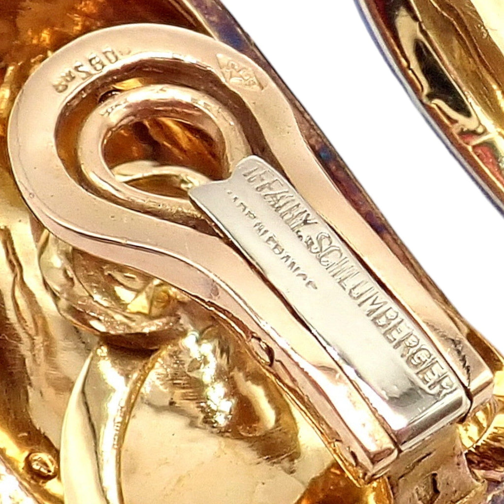 The Rare Tiffany & Co Schlumberger 18k Yellow Gold Large Blue Enamel Earrings are a stunning and unique accessory.