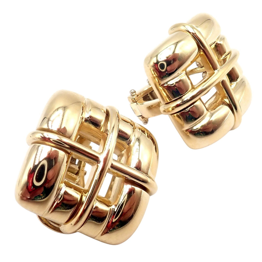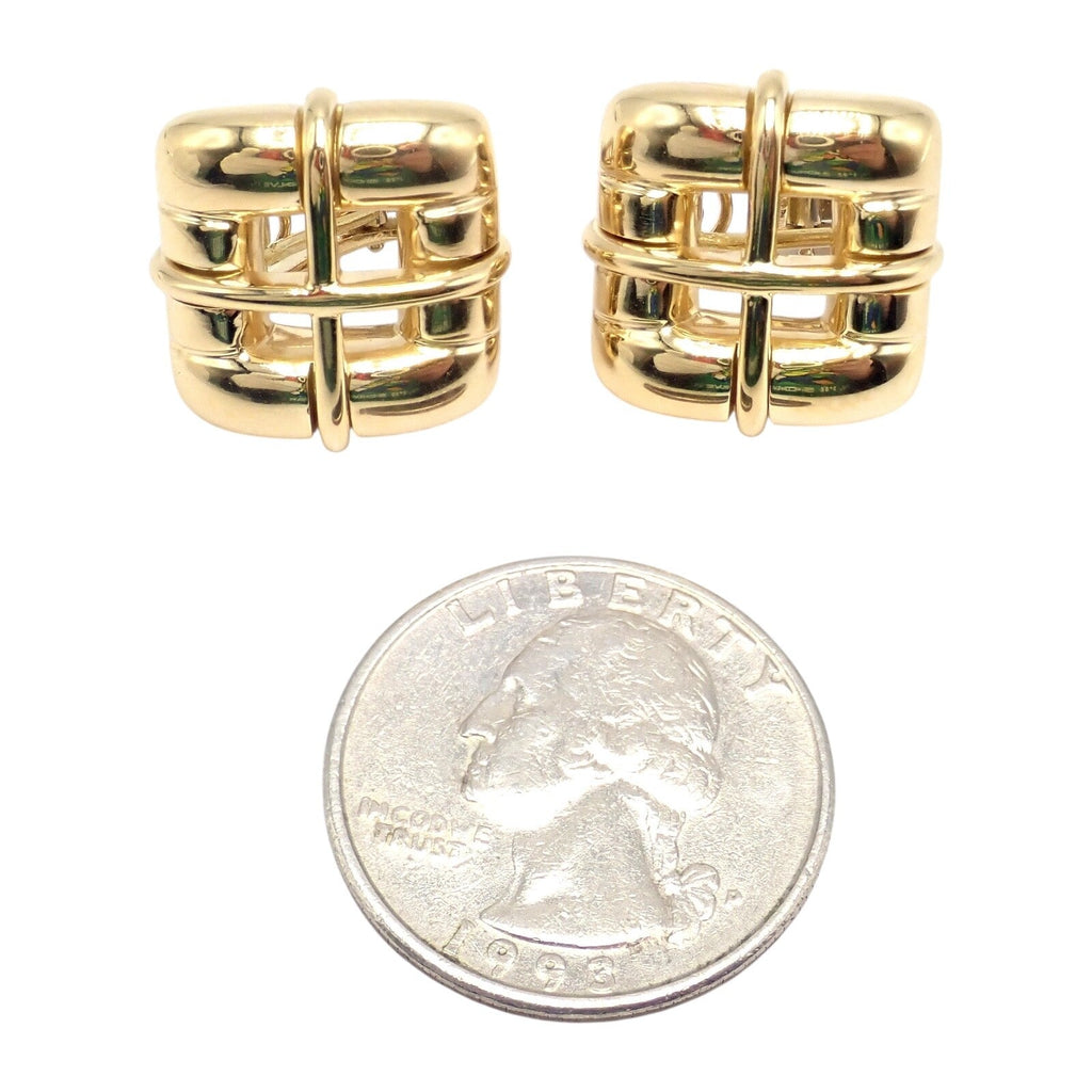 These authentic, rare vintage Tiffany & Co. earrings from 2001 are exquisitely crafted in 18k yellow gold, featuring a unique square window design.