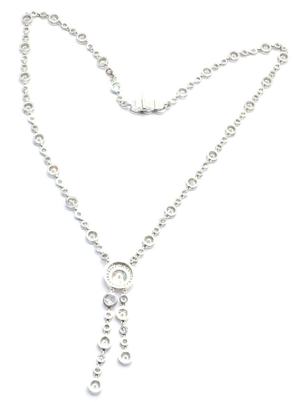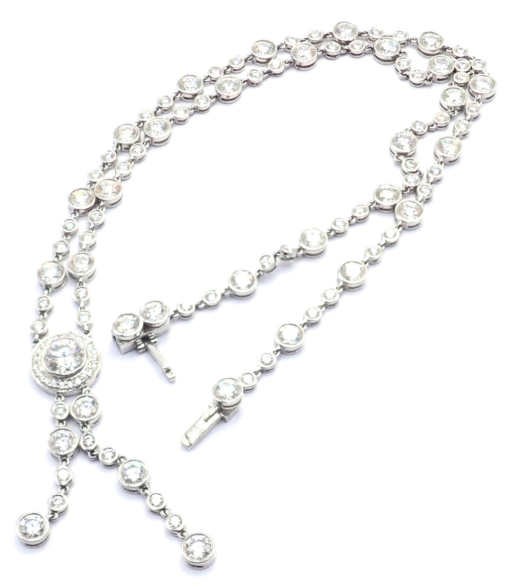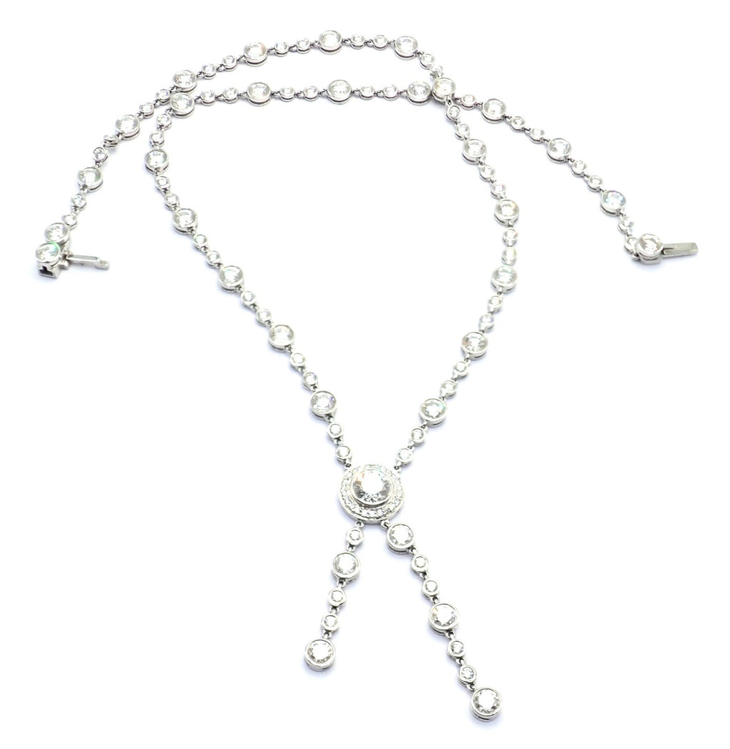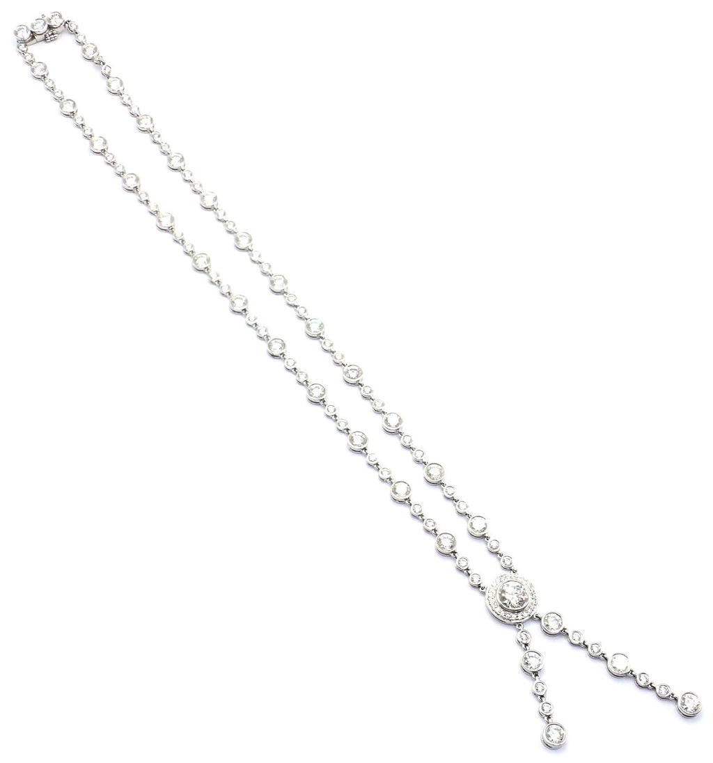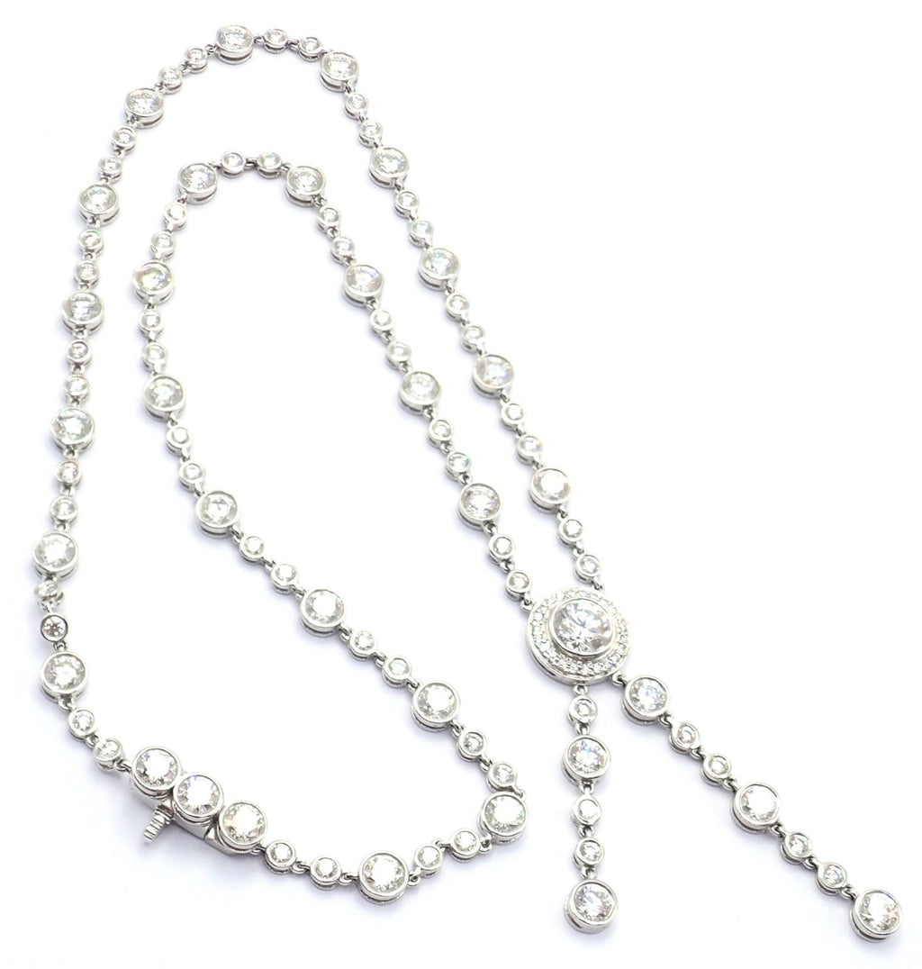 The Tiffany & Co. Jazz Platinum 8.75ct Diamond Lariat Drop Necklace is an exquisite statement piece featuring round brilliant diamonds bezel-set in platinum.