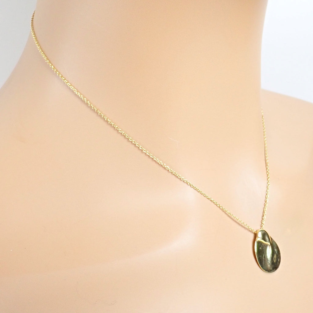 Smooth, organic contours form a modern, minimalist silhouette, suspended from a matching chain.