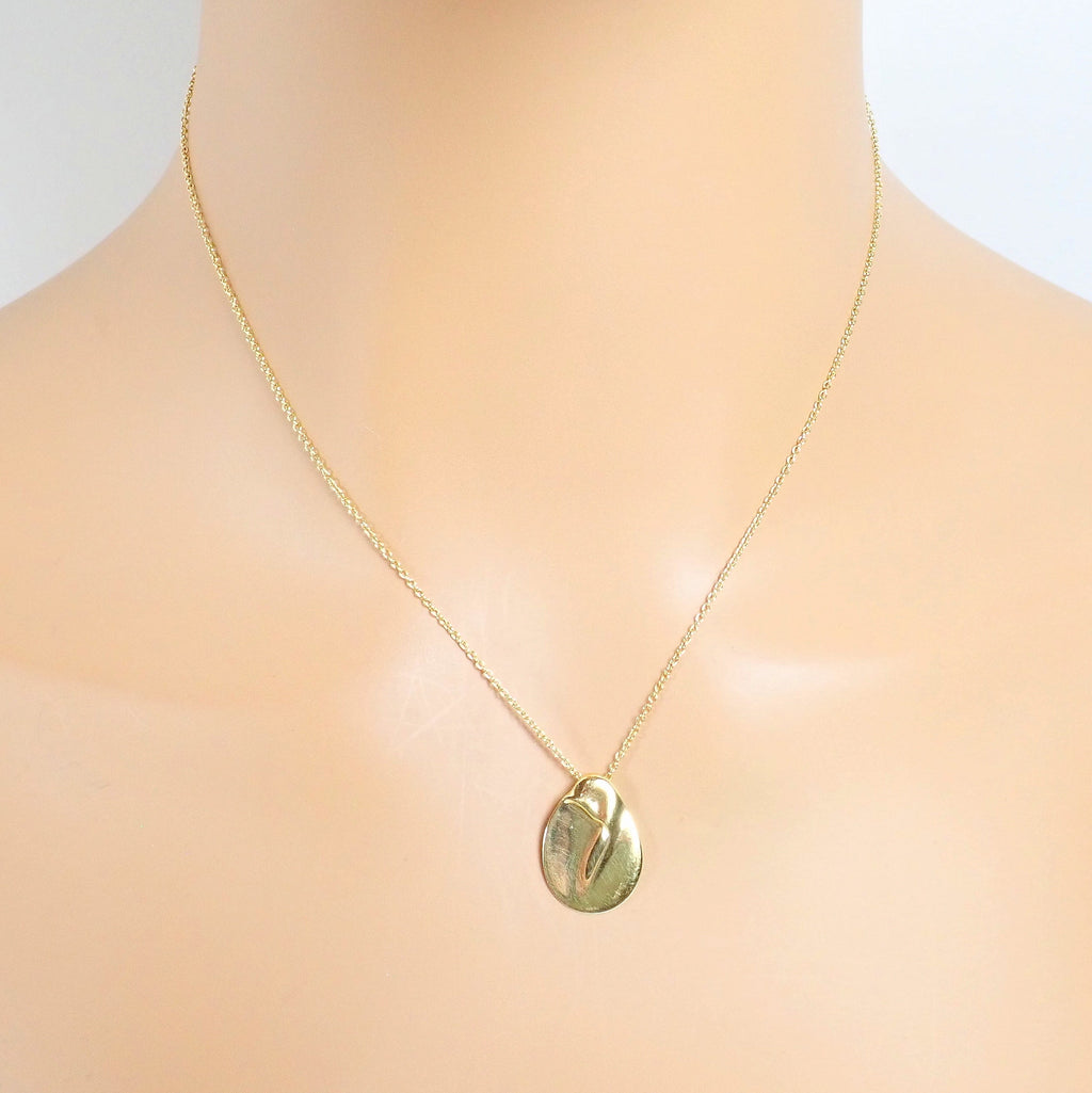 This Tiffany & Co. Elsa Peretti 18k yellow gold Madonna pendant features her iconic sculptural design, symbolizing protection and serenity.