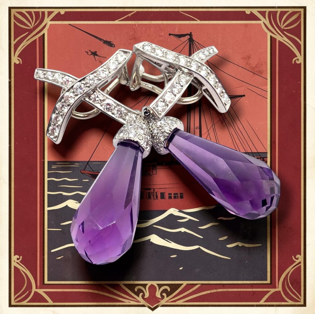 Approx 100 Round brilliant cut diamonds VS1 clarity, G color 2 Briolette cut amethysts each 11mm x 21mm. |