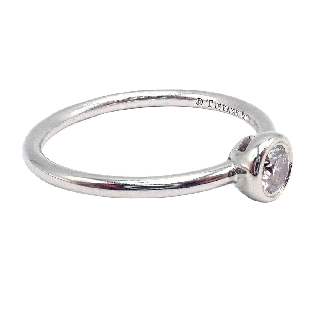 This Tiffany & Co. engagement stacking ring, sized 5.75, is exquisitely crafted from platinum and features a 0.12-carat diamond at its center.