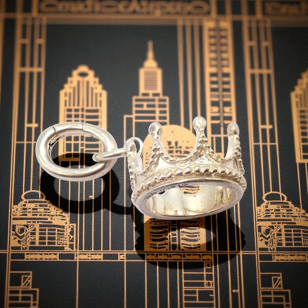 Expertly crafted in sterling silver, this regal charm features an intricate crown design adorned with beaded detailing.