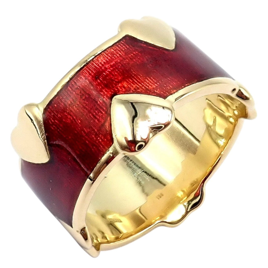 This Tiffany & Co. Schlumberger band ring is crafted in radiant 18k yellow gold and adorned with rich red enamel.