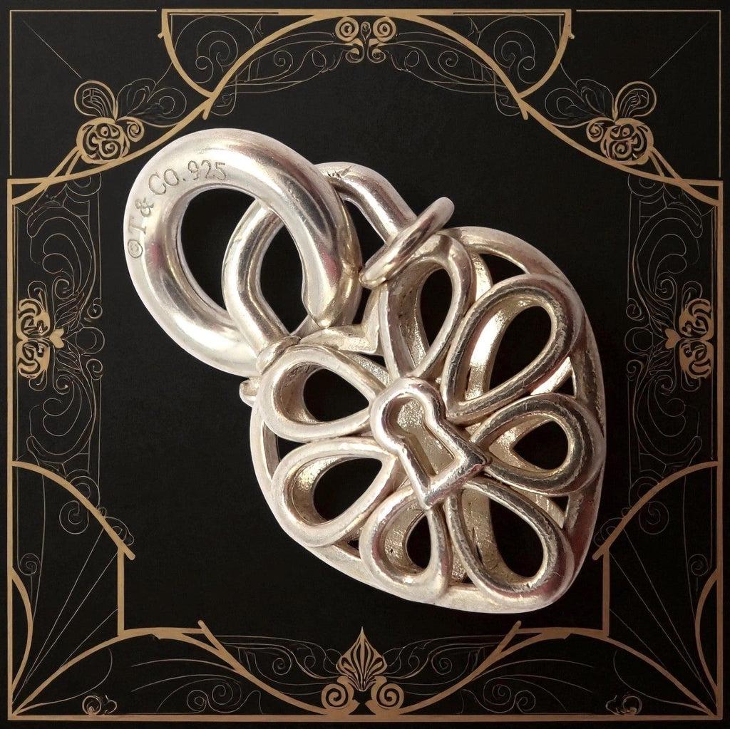 Tiffany & Co. Silver Heart Padlock Charm Pendant with Spring Ring Clasp —