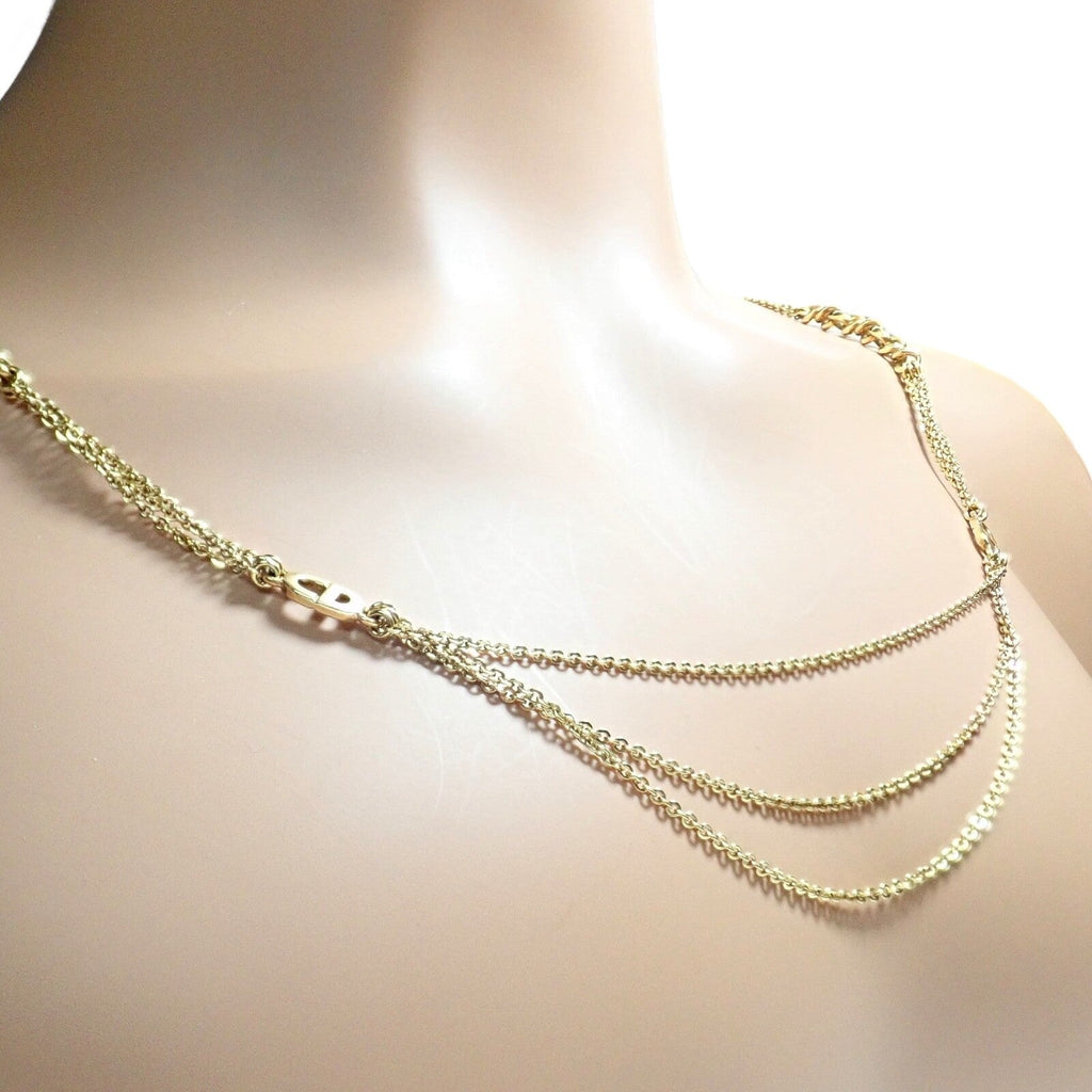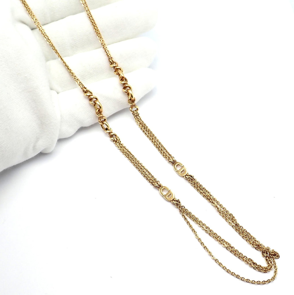 Vintage Christian Dior necklace crafted in solid 18k gold, featuring an elegant 28" length and signature "CD" logo accents.