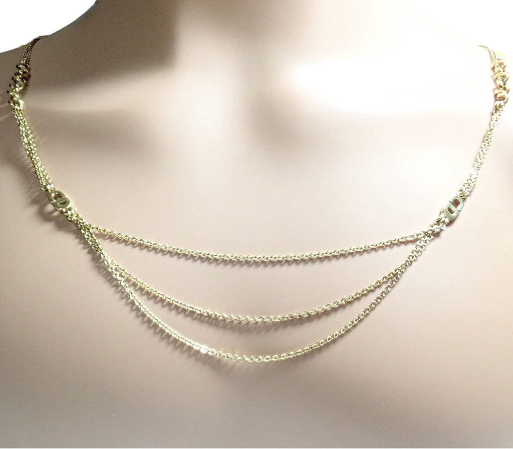 Made in Germany, this luxurious piece showcases three delicate strands at the front for a layered effect, blending timeless sophistication with iconic Dior design—a rare and refined addition to any fine jewelry collection.
