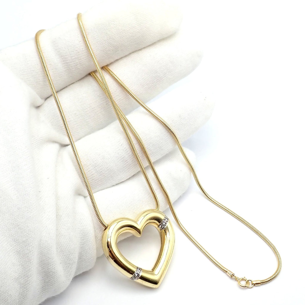Designed by Paloma Picasso, it features a large, elegant heart pendant crafted from 18k yellow gold and adorned with sparkling diamonds.